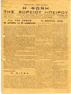 | Υπότιτλος | Όργανο της Εθνικοτοπικής Οργάνωσης Βορειοηπειρωτών του Εθνικού Απελευθερωτικού Μετώπου Ε.Α.Μ. |