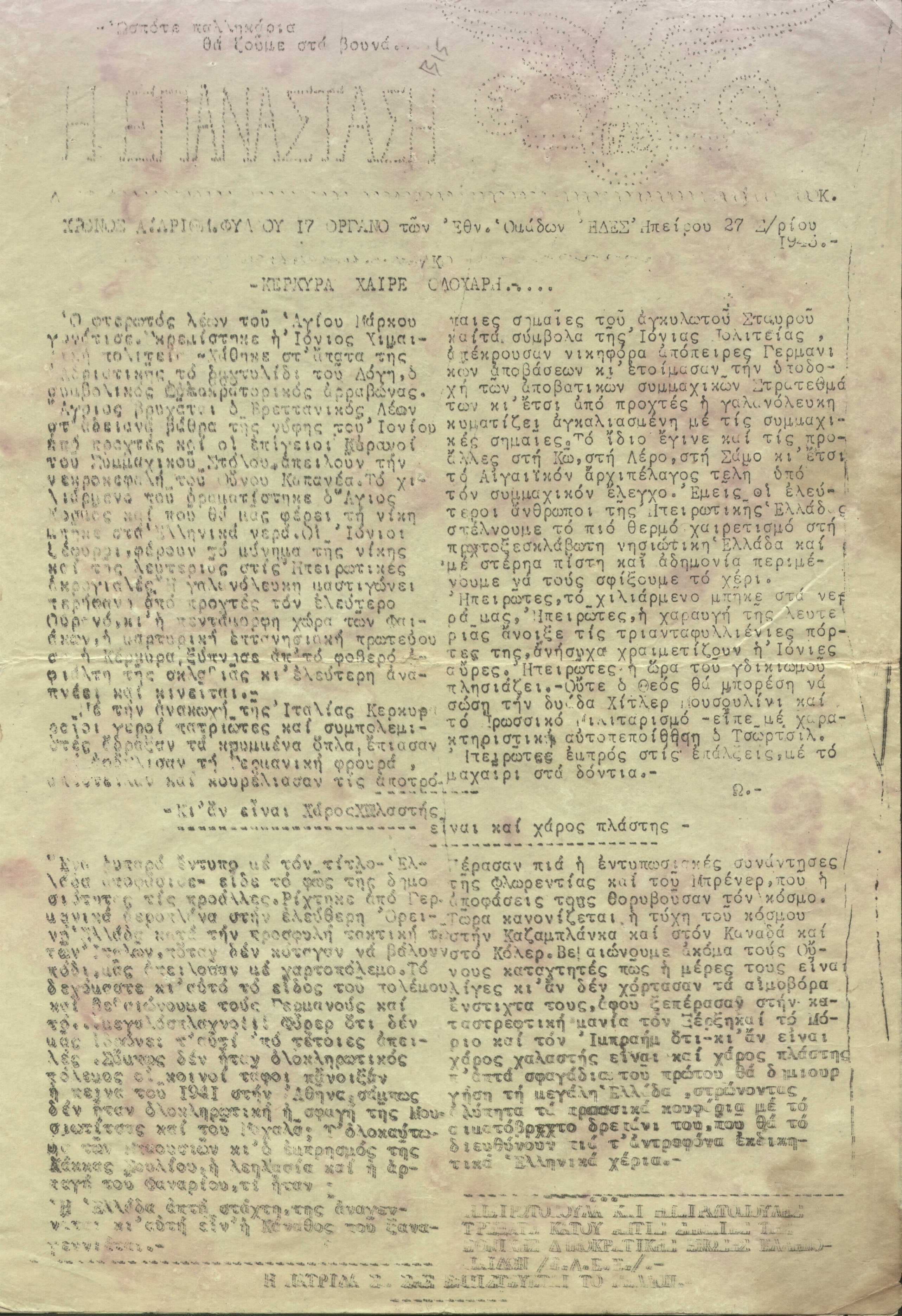 Υπότιτλος | Όργανο των Εθν. Ομάδων ΕΔΕΣ Ηπείρου |