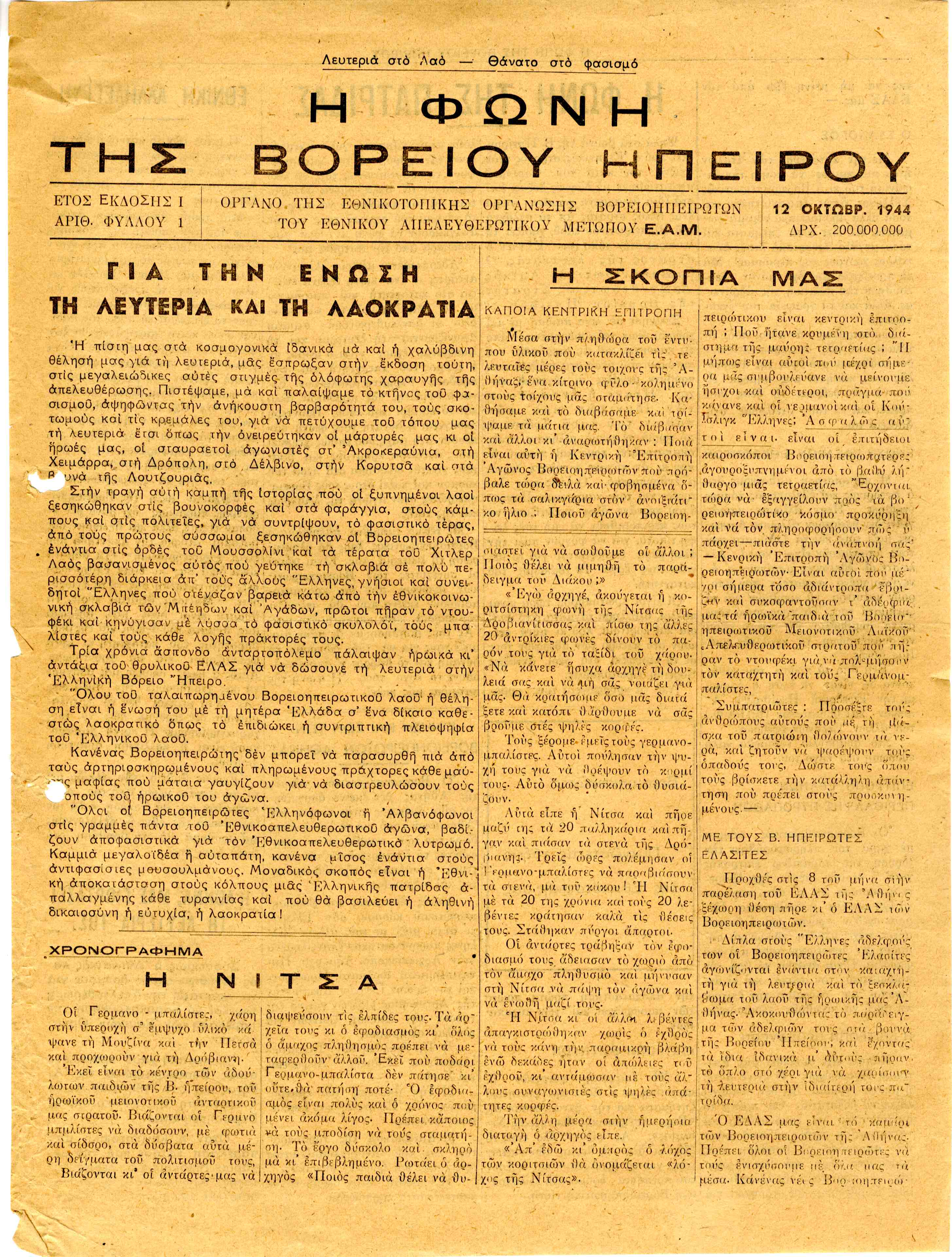 | Εκδότης | Εθνικό Απελευθερωτικό Μέτωπο (ΕΑΜ) Ε.Α.Μ. / Οργάνωση Βορειοηπειρωτών |