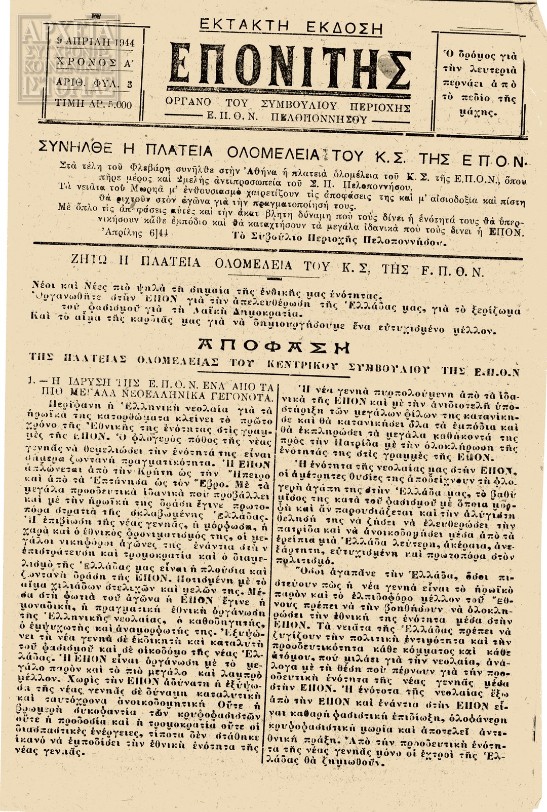 | Τίτλος | Επονίτης [πρωτοσέλιδα] |