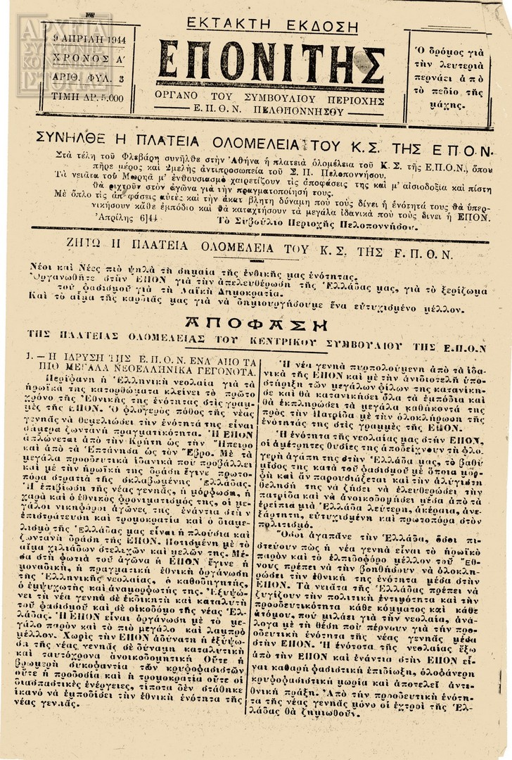 | Θέματα | ΕΠΟΝ (Ενιαία Πανελλαδική Οργάνωση Νέων) ΕΠΟΝ / Τύπος Πελοπόννησος Αχαΐα |
