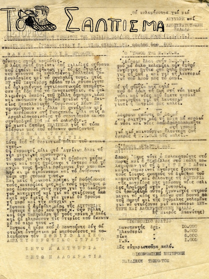 | Εκδότης | Α.Α.Μ.Υ. (Αγροτικό Αντιδικτατορικό Μέτωπο Υπαίθρου) Α.Μ.Ε. (Απελευθερωτικό Μέτωπο Εργαζομένων) |