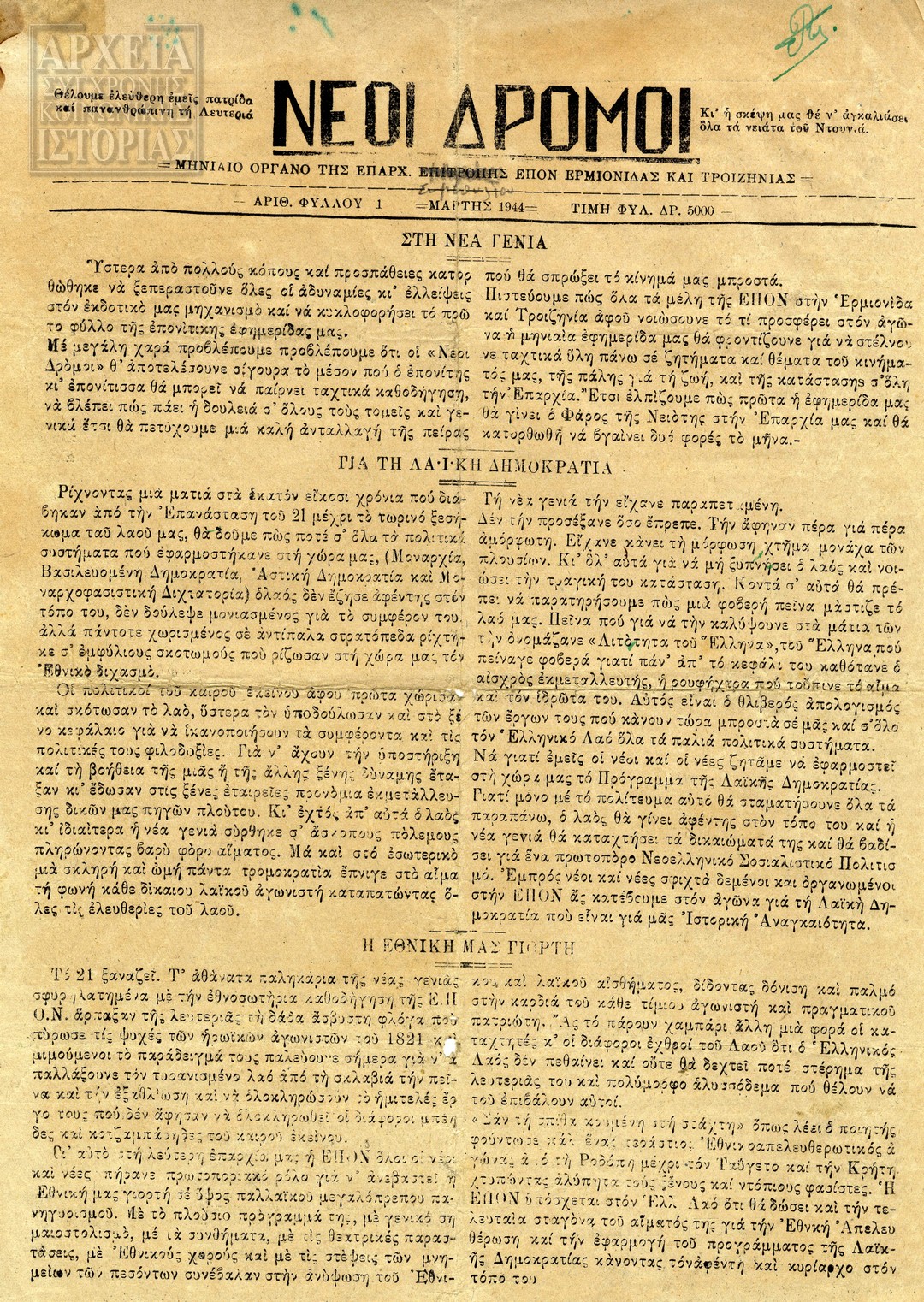 | Υπότιτλος | Μηνιαίο Όργανο της Επαρχ. Επιτροπής Ε.Π.Ο.Ν. Ερμιονίδας καί Τροιζηνίας |