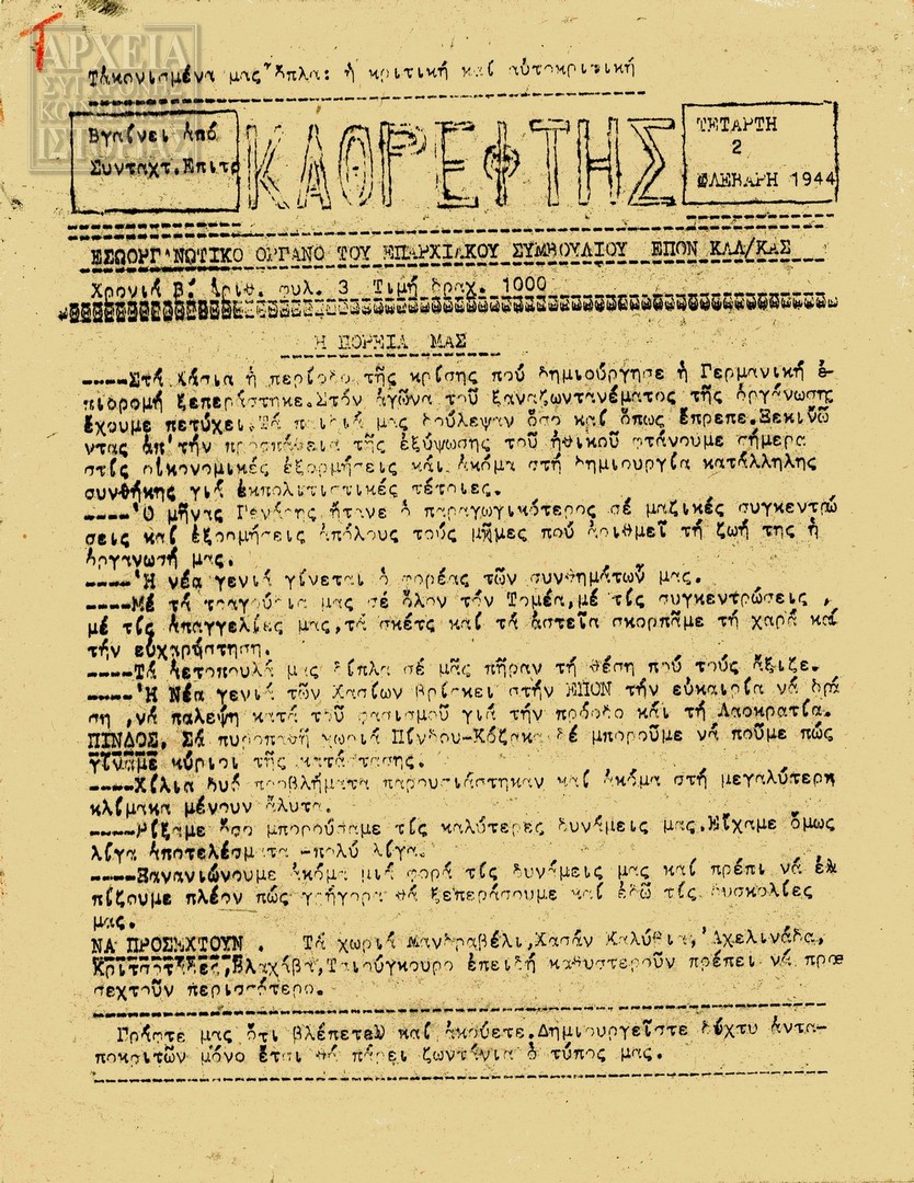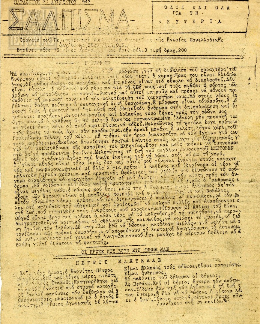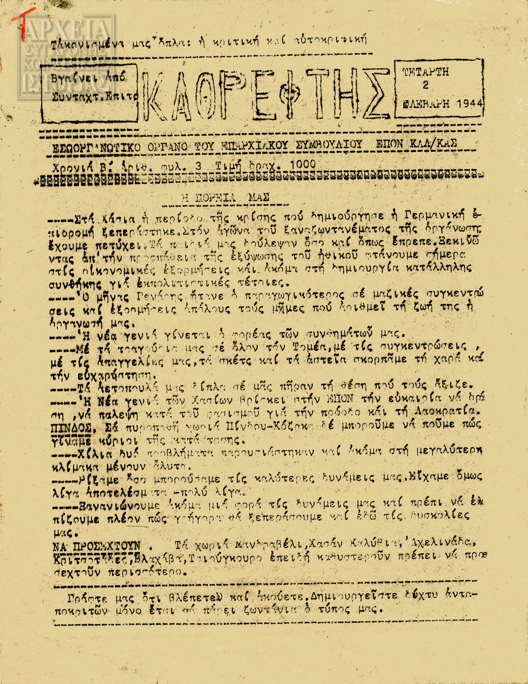 | Υπότιτλος | Όργανο της Π.Ε. Εθνικού Απελευθερωτικού Μετώπου /ΕΑΜ/ Καλαμπάκας |