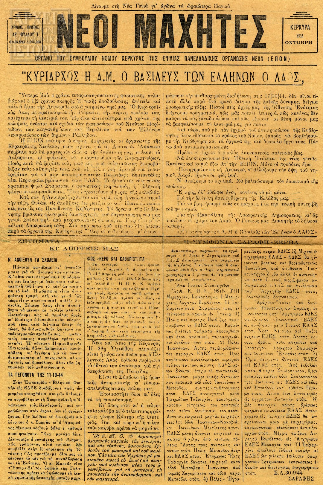 | Υπότιτλος | Όργανο της Νομαρχιακής Επιτροπής ΕΑΜ Κέρκυρας |