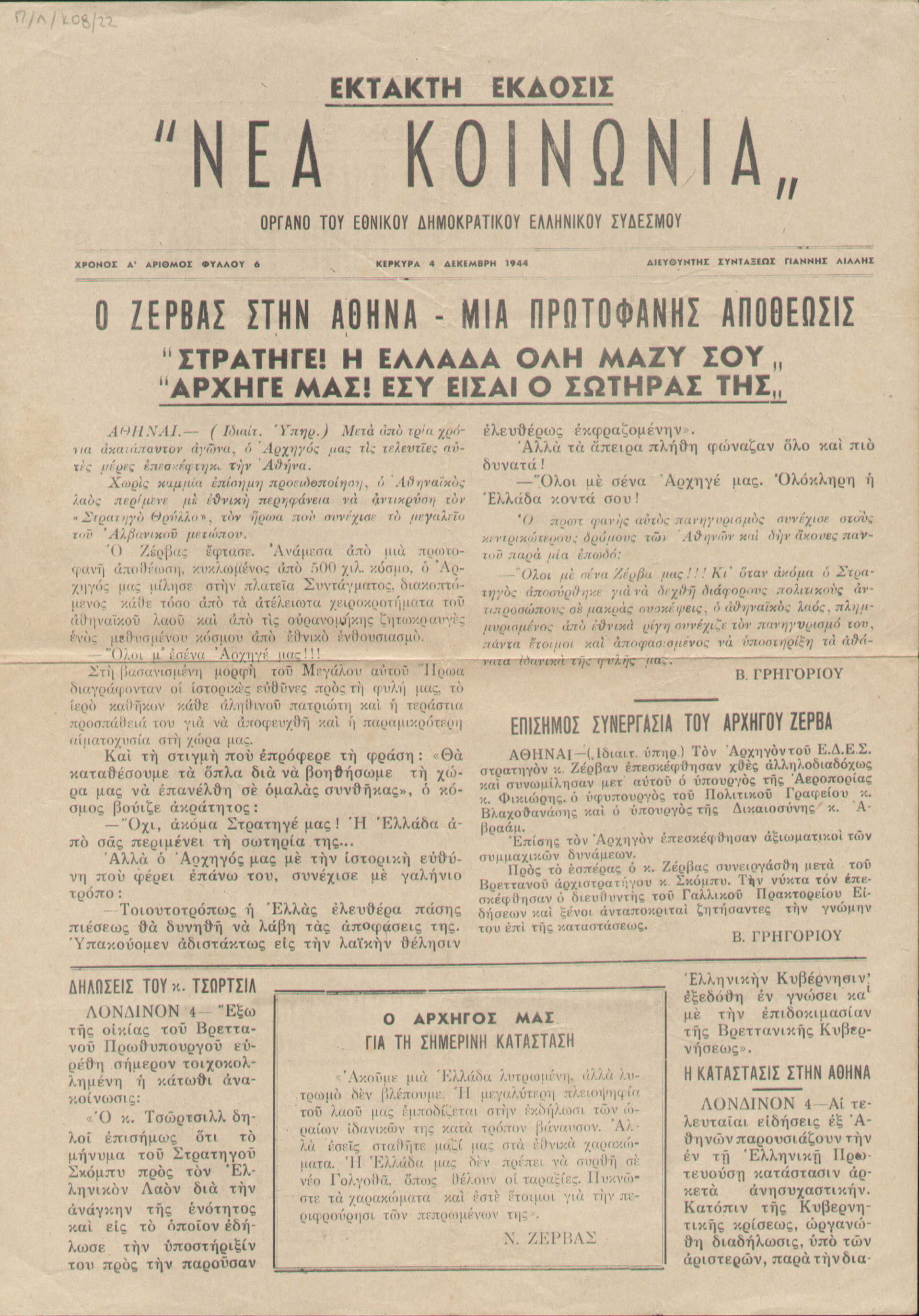 | Εκδότης | ΕΔΕΣ (Εθνικός Δημοκρατικός Ελληνικός Σύνδεσμος) Λίλλης Γ. (διευθυντής) |