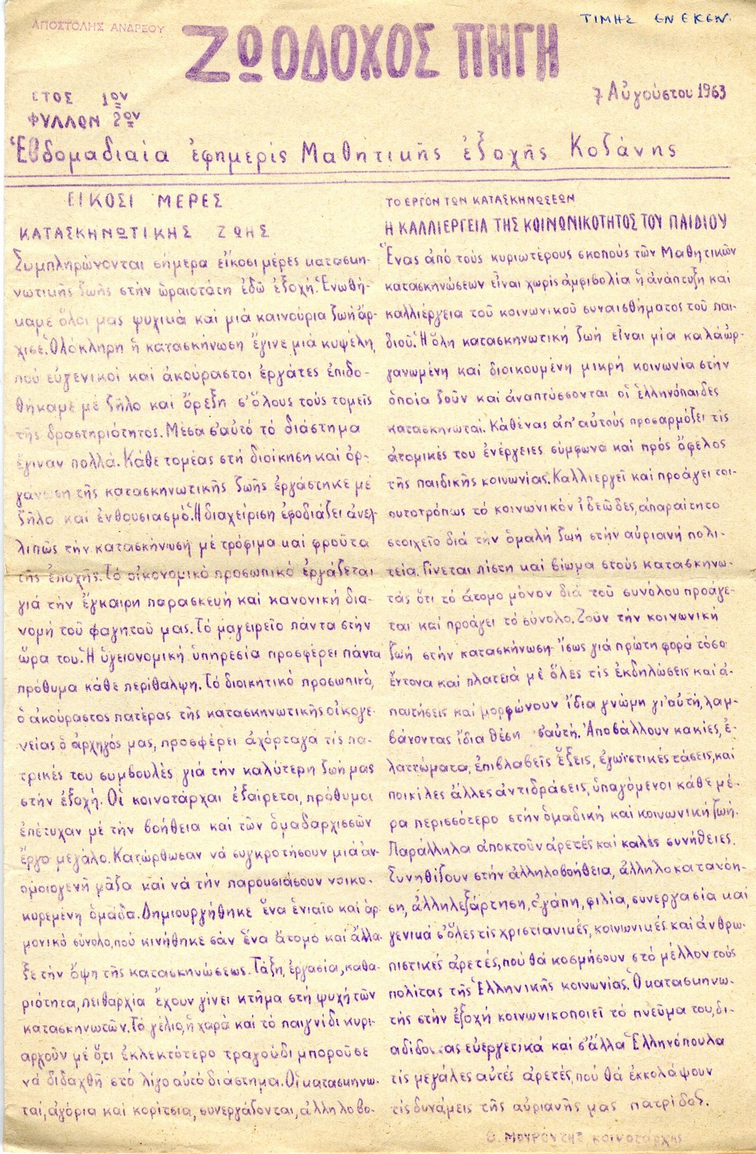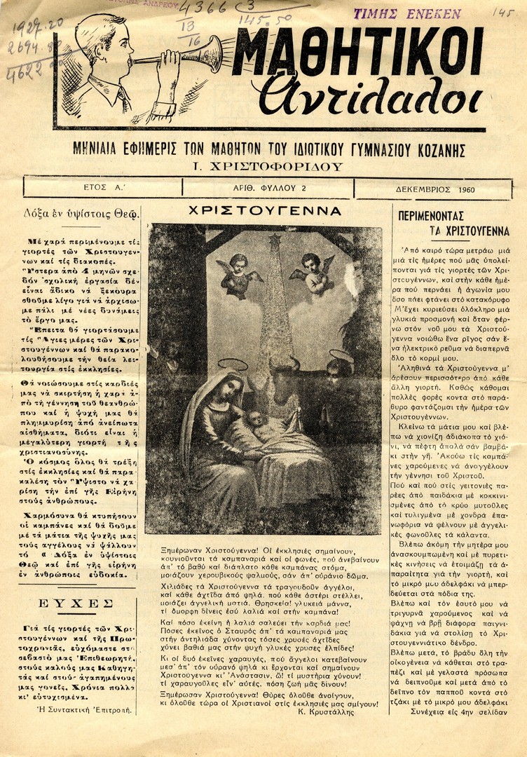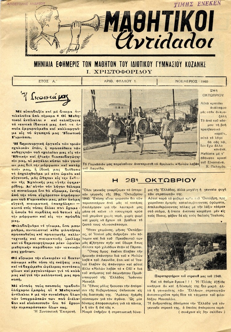 | Υπότιτλος | Μηνιαία εφημερίς των μαθητών του ιδιωτικού γυμνασίου Κοζάνης Ι. Χριστοφορίδου |