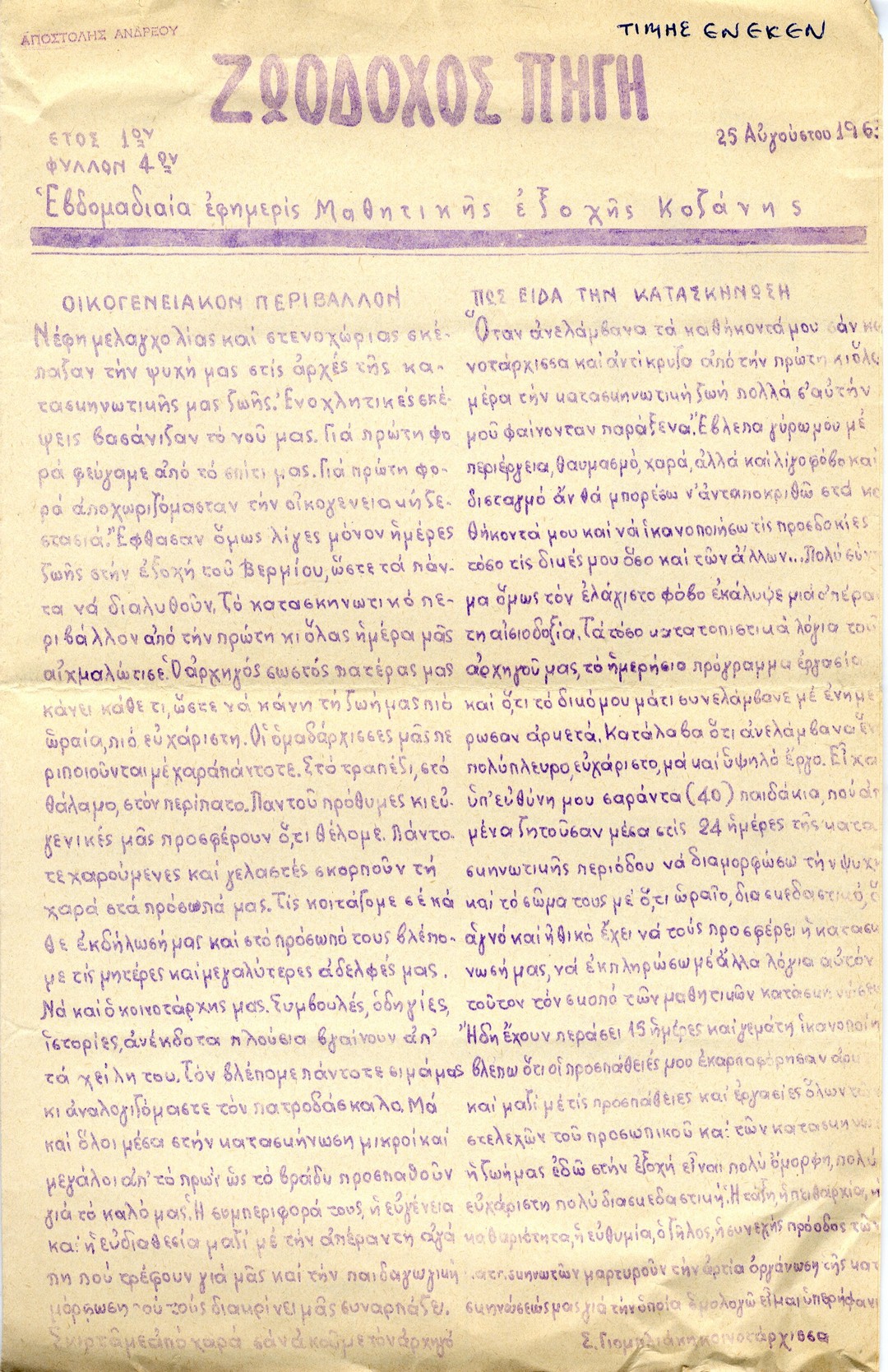 | Τίτλος | Κατασκήνωσις "Ζωοδόχος Πηγή" (Η) |
