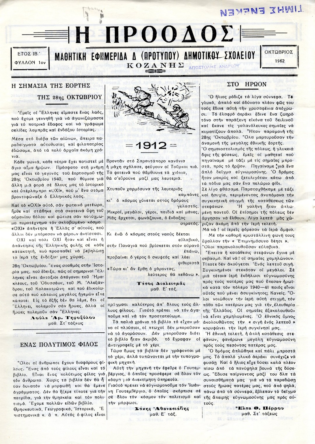 | Θέμα ως θέμα | 28η Οκτωβρίου / επέτειος Πολιτιστική δραστηριότητα Εκπαίδευση / Πρωτοβάθμια Μαθητικός Τύπος |