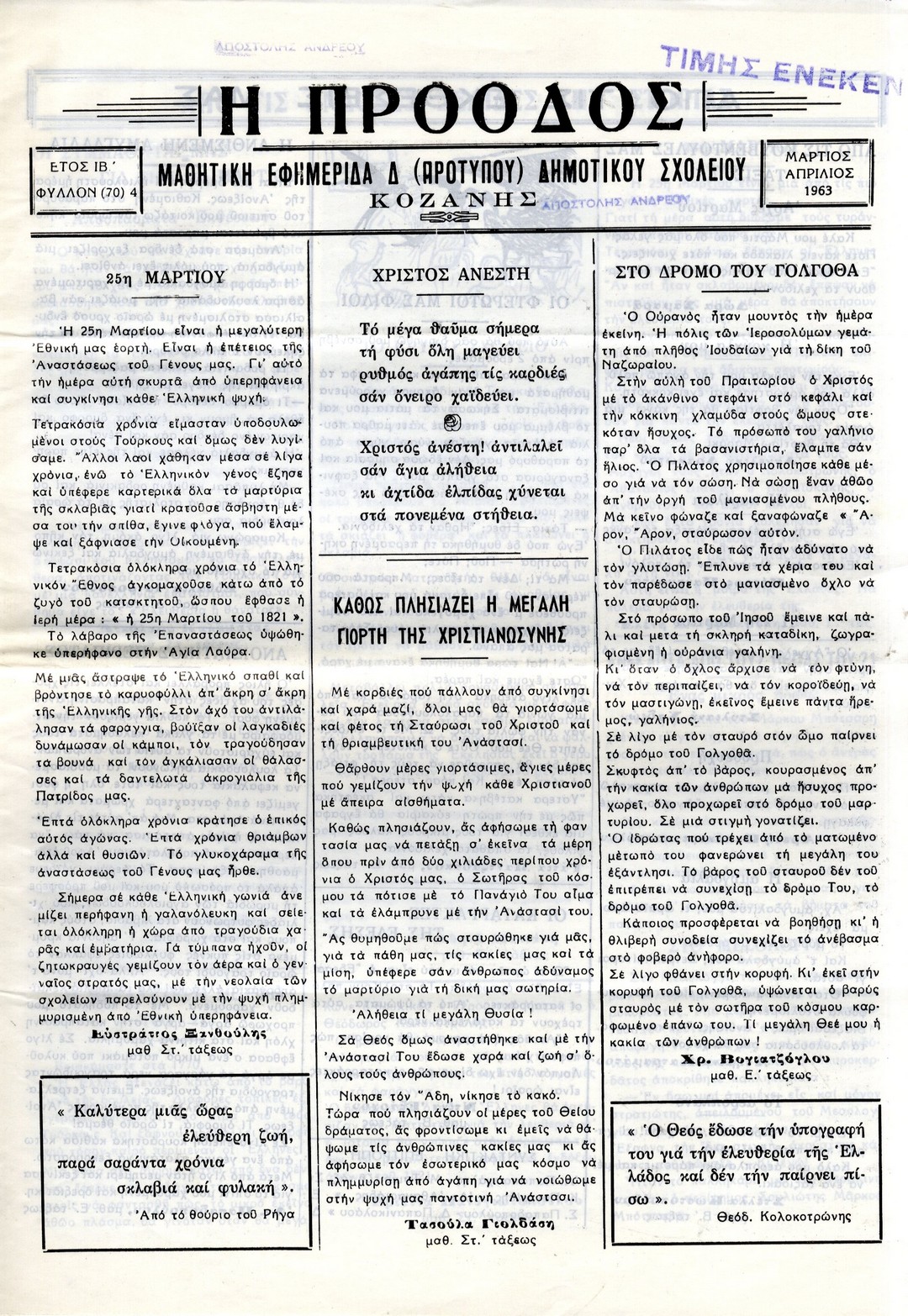 | Υπότιτλος | Μαθητική εφημερίδα Δ' (προτύπου) Δημοτικού Σχολείου Κοζάνης |