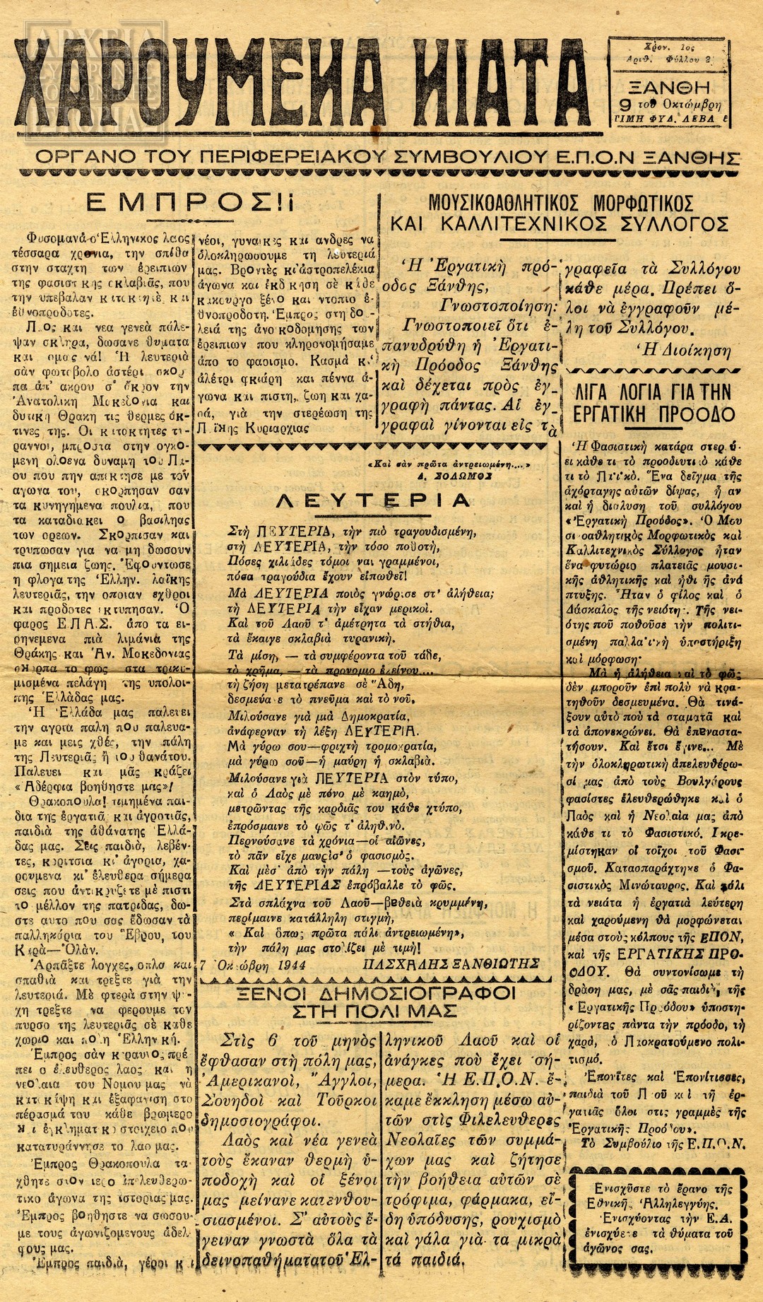 | Υπότιτλος | Όργανο της Π.Ε. του Εθνικού Απελευθερωτικού Μετώπου (Ε.Α.Μ.) |