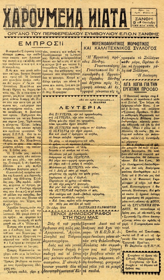 | Εκδότης | Πολιτικός Συνασπισμός Κομμάτων του Ε.Α.Μ. / Νομός Ροδόπης |