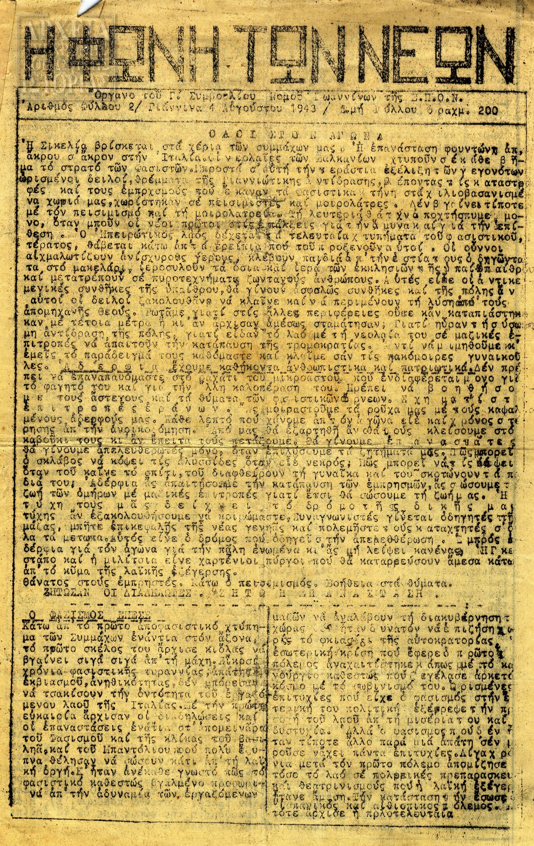 | Υπότιτλος | Όργανο της Περιφ. Επιτροπής Απελευθ. Μετώπου (Ε.Α.Μ.) Ιωαννίνων |