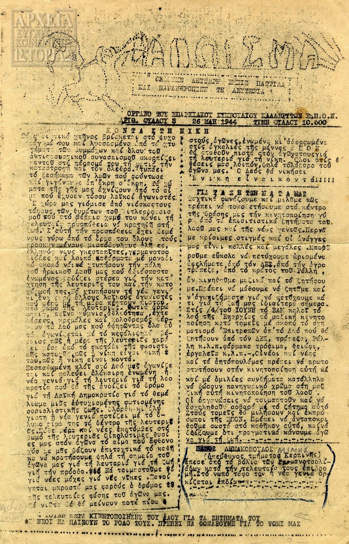 | Εκδότης | ΕΠΟΝ / Επαρχιακό Συμβούλιο Καλαβρύτων |