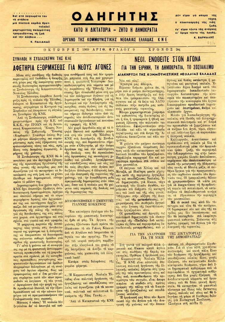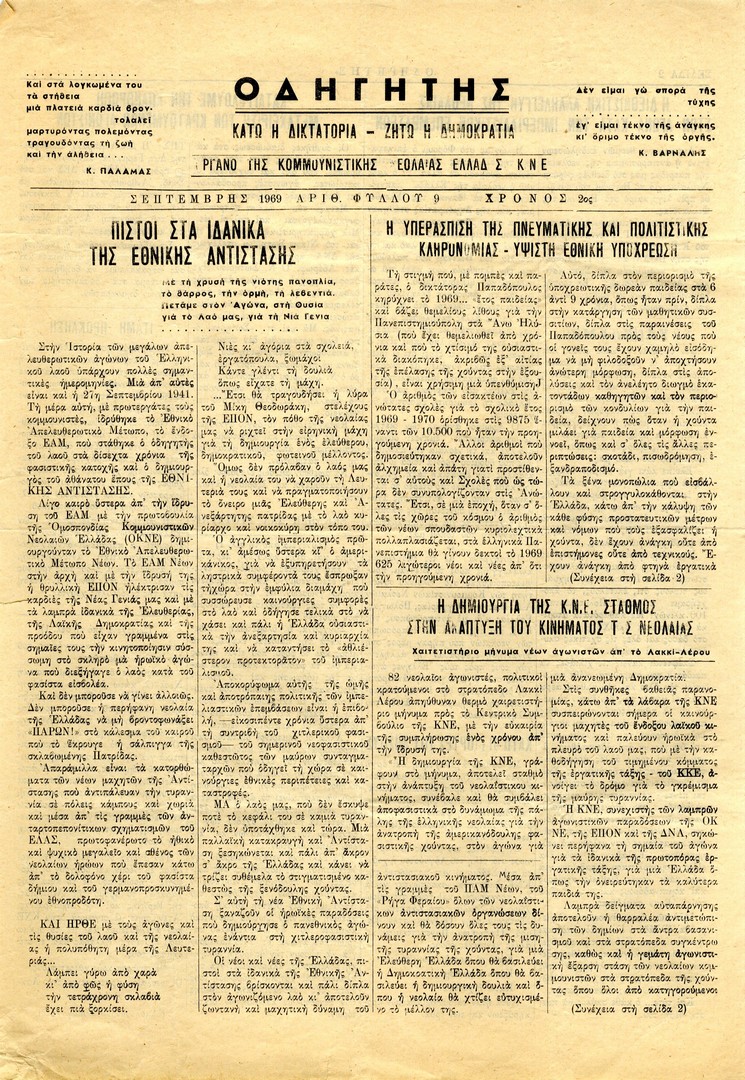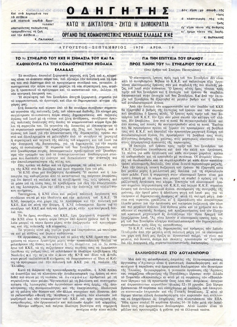 | Θέματα | ΚΚΕ (Κομμουνιστικό Κόμμα Ελλάδας) ΠΑΜ (Πατριωτικό Αντιδικτατορικό Μέτωπο) ΚΝΕ (Κομμουνιστική Νεολαία Ελλάδας) ΚΚΕ/ Συνέδριο (9ο) |