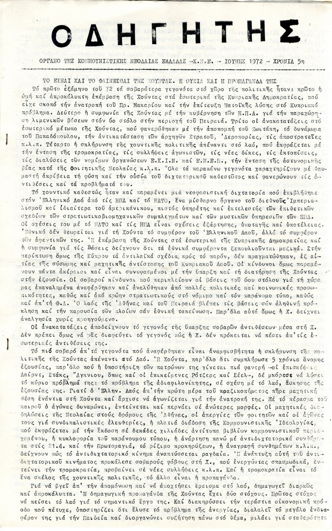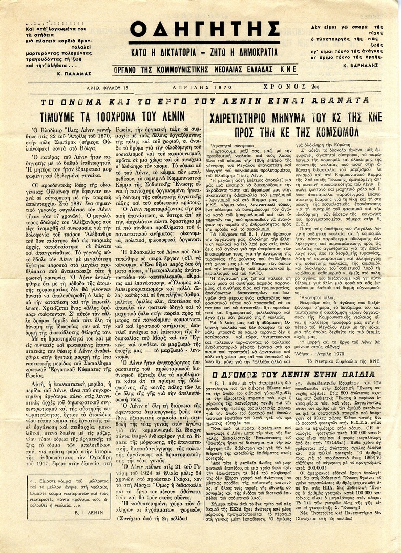 | Θέμα ως θέμα | Αντιδικτατορικό κίνημα Αντιδικτατορικός αγώνας Αντιδικτατορικές οργανώσεις Επέτειος δικτατορίας 21ης Απριλίου (3η) Αντιδικτατορικός Τύπος εσωτερικού Β.Ι. Λένιν / επέτειος γέννησης Δικτατορία 21ης Απριλίου 1967 / Πολιτικές διώξεις Αντιδικτατορικές δράσεις / Δηλώσεις συμπαράστασης Δράσεις αλληλεγγύης |