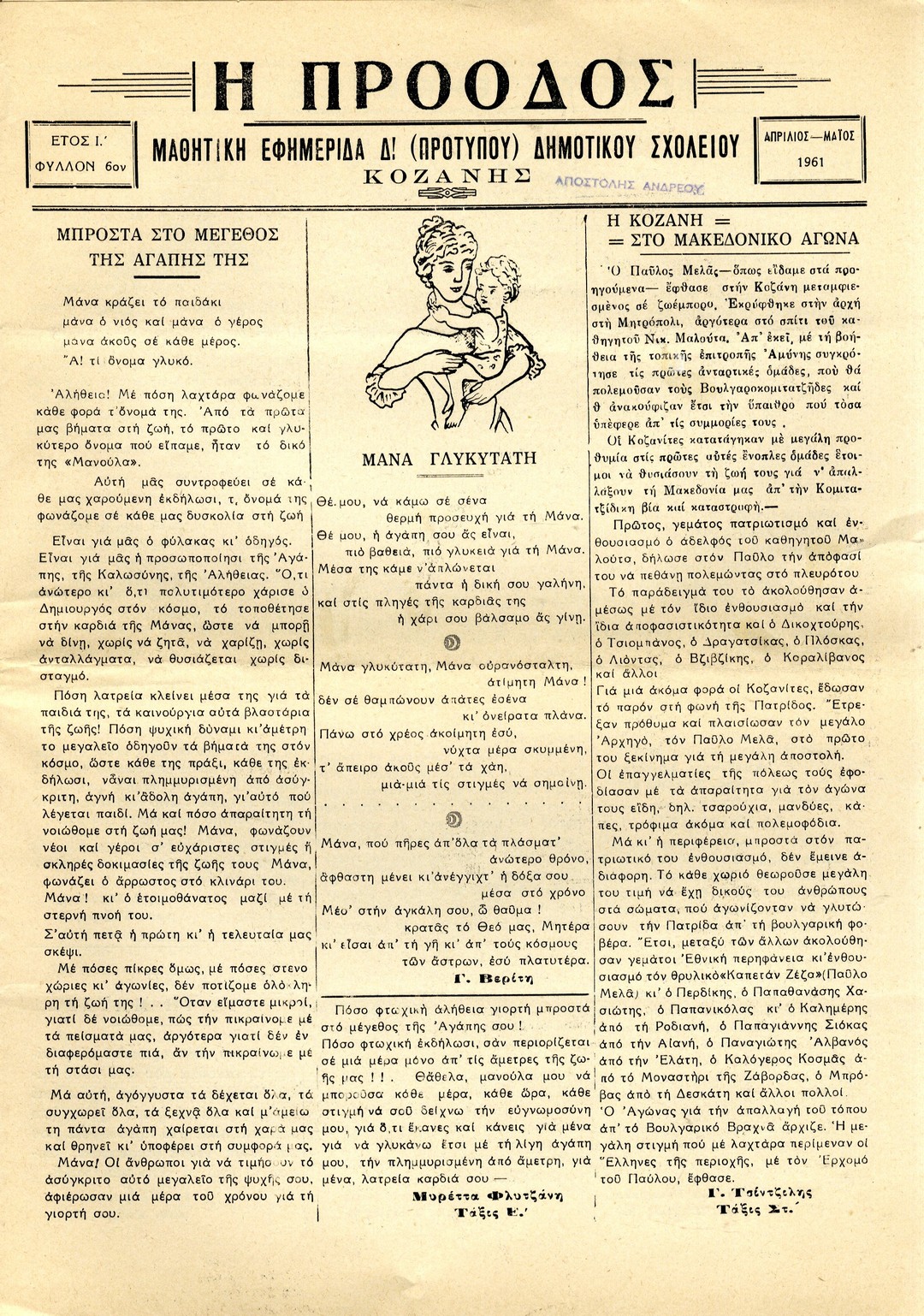 | Υπότιτλος | Μαθητική εφημερίδα Δ' (προτύπου) Δημοτικού Σχολείου Κοζάνης |