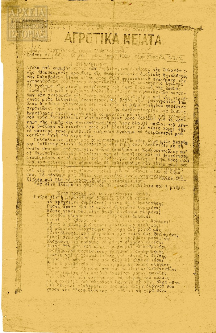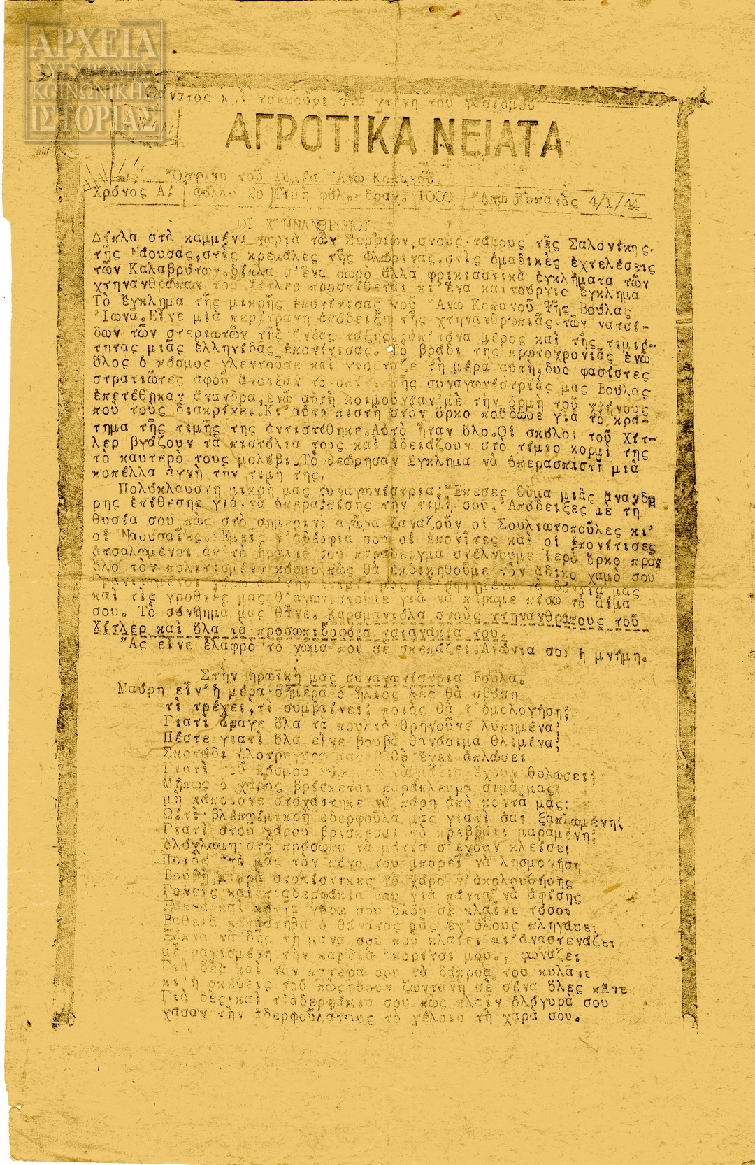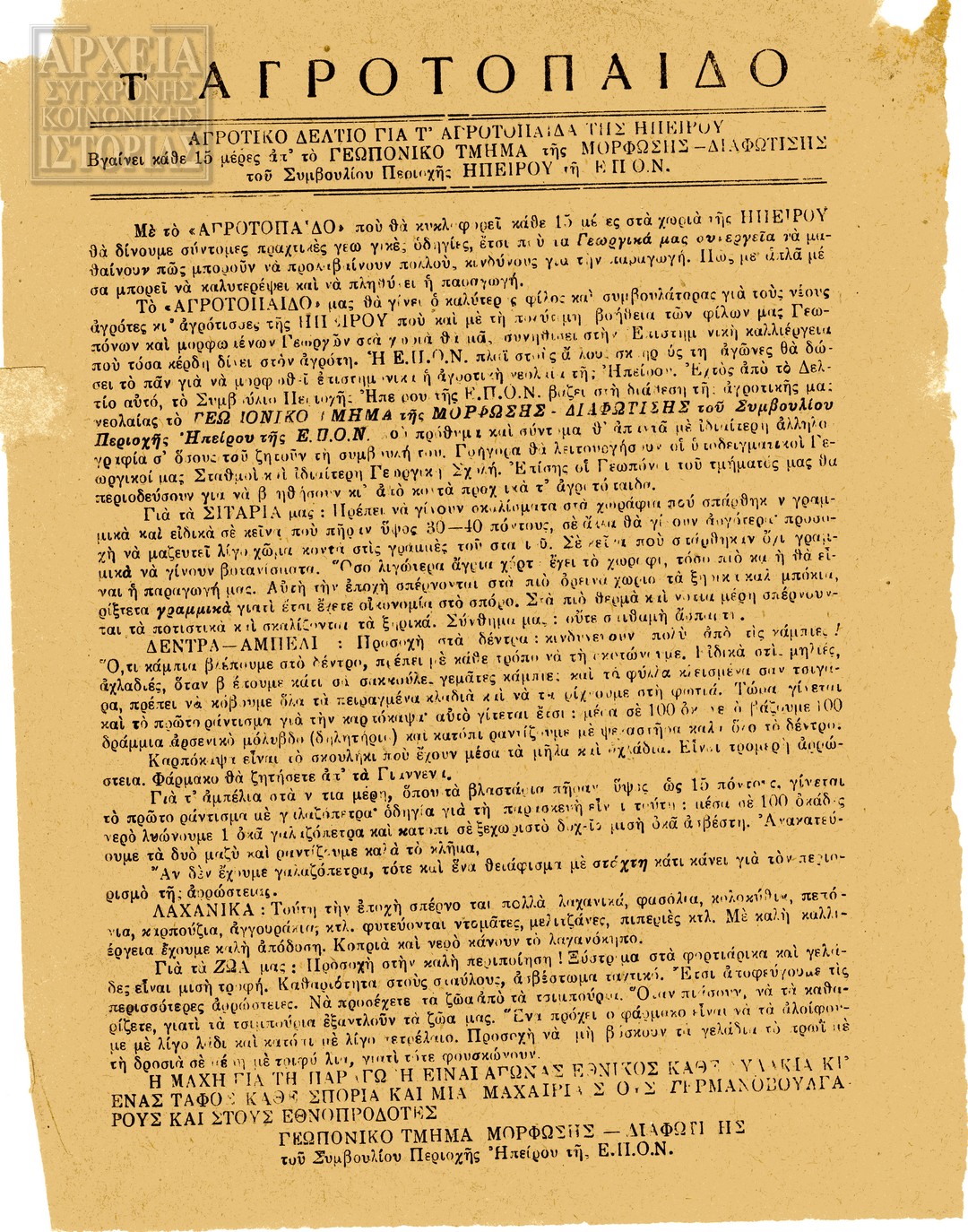 | Υπότιτλος | Αγροτικό Δελτίο για τα Αγροτόπαιδα της Ηπείρου. Βγαίνει κάθε μήνα από τό Γεωπονικό Τμήμα τής Μόρφωσης - Διαφωτισμού τού Συμβουλίου Περιοχής Ηπείρου τής ΕΠΟΝ |