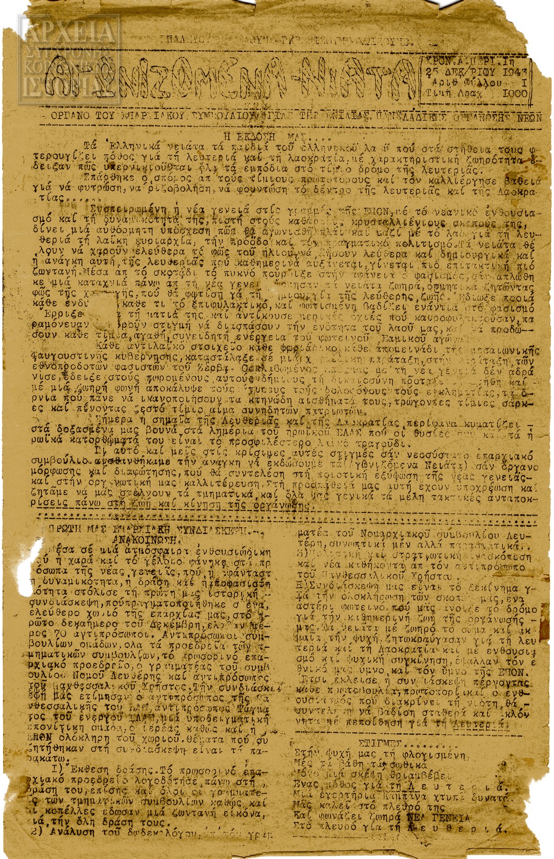 | Υπότιτλος | Όργανο της Κ.Ε. του Εθνικού Απελευθερωτικού Μετώπου (ΕΑΜ) |