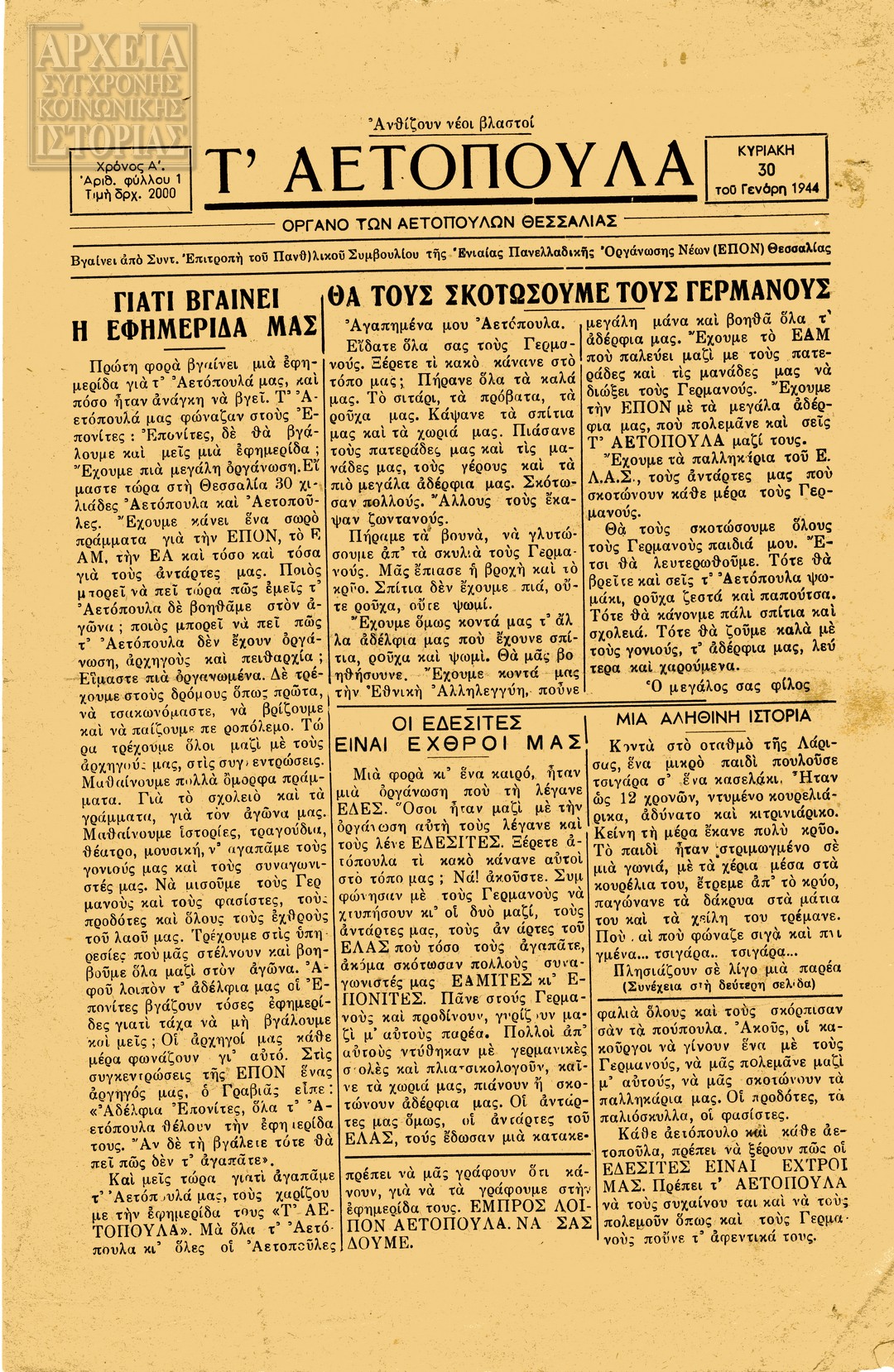 | Υπότιτλος | Όργανο των Αετόπουλων Θεσσαλίας |