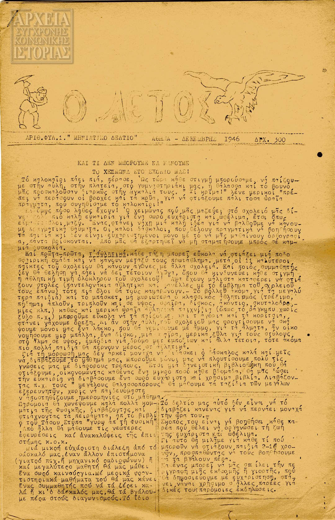 | Υπότιτλος | Όργανο του Συνδικαλιστικού Τομέα της ΕΠΟΝ της Αθήνας |