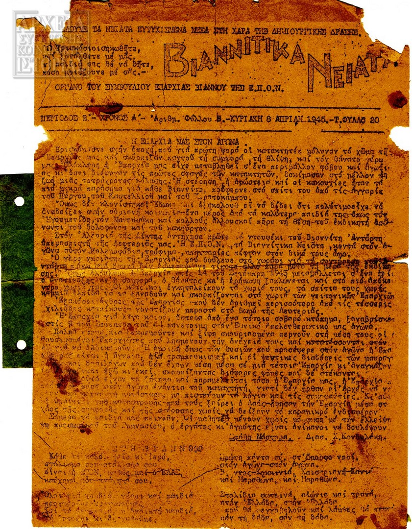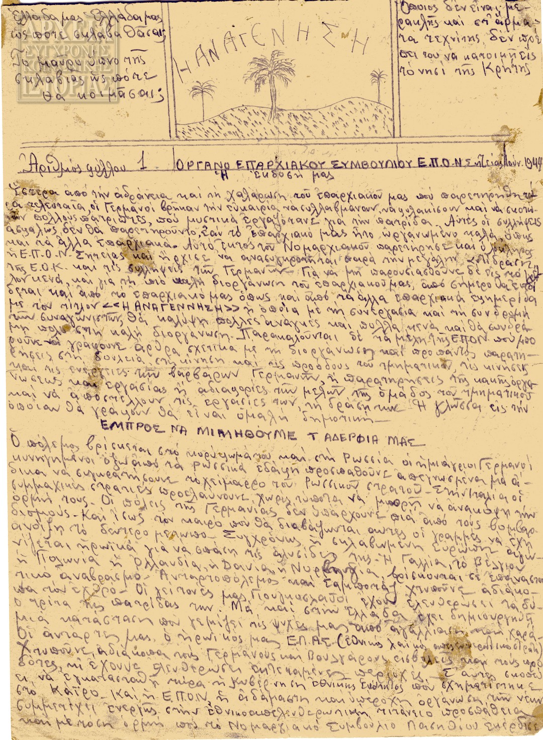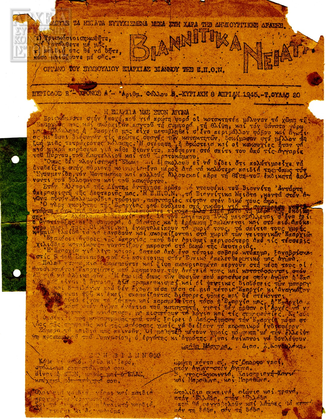 | Εκδότης | ΕΠΟΝ / Συμβούλιο Επαρχίας Βιάννου |