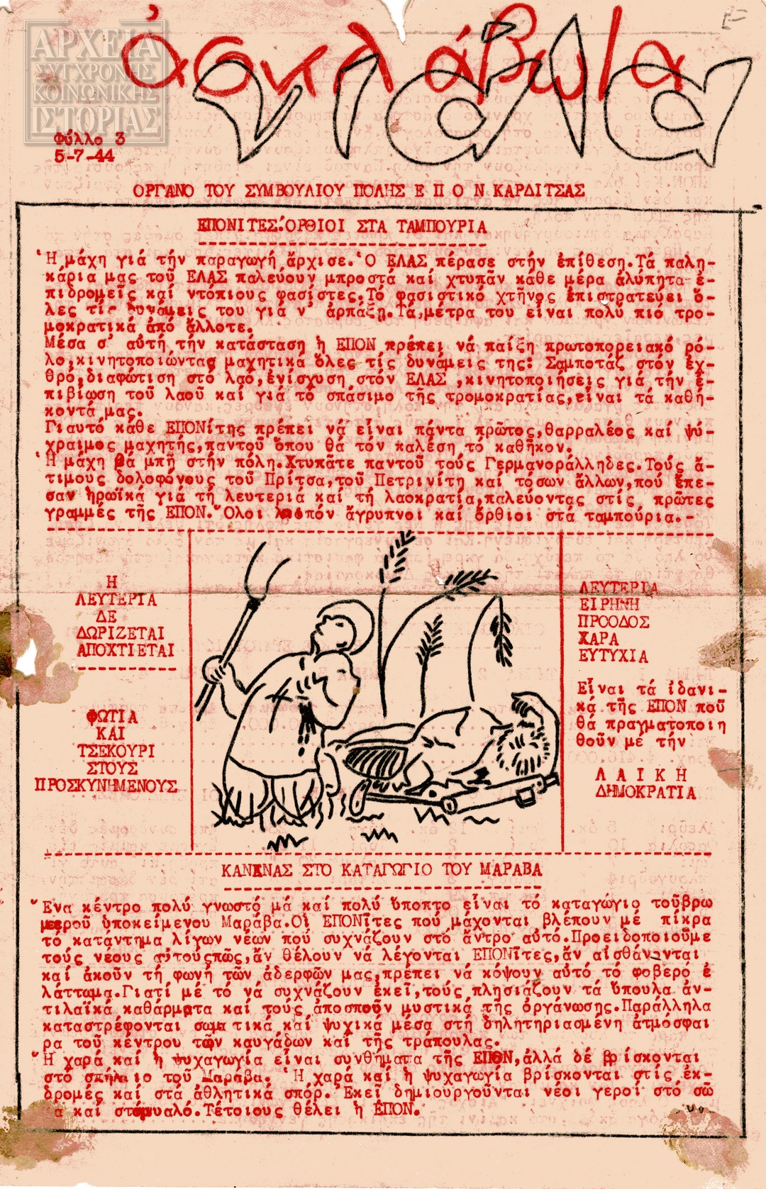 | Θέματα | Ερυθρός Σταυρός ΕΑΜ (Εθνικό Απελευθερωτικό Μέτωπο) ΕΠΟΝ (Ενιαία Πανελλαδική Οργάνωση Νέων) ΕΠΟΝ / Τύπος |