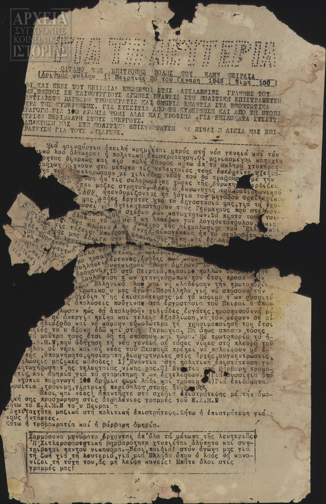 | Υπότιτλος | Όργανο της Επιτροπής πόλης του ΕΑΜΝ Πειραιά |