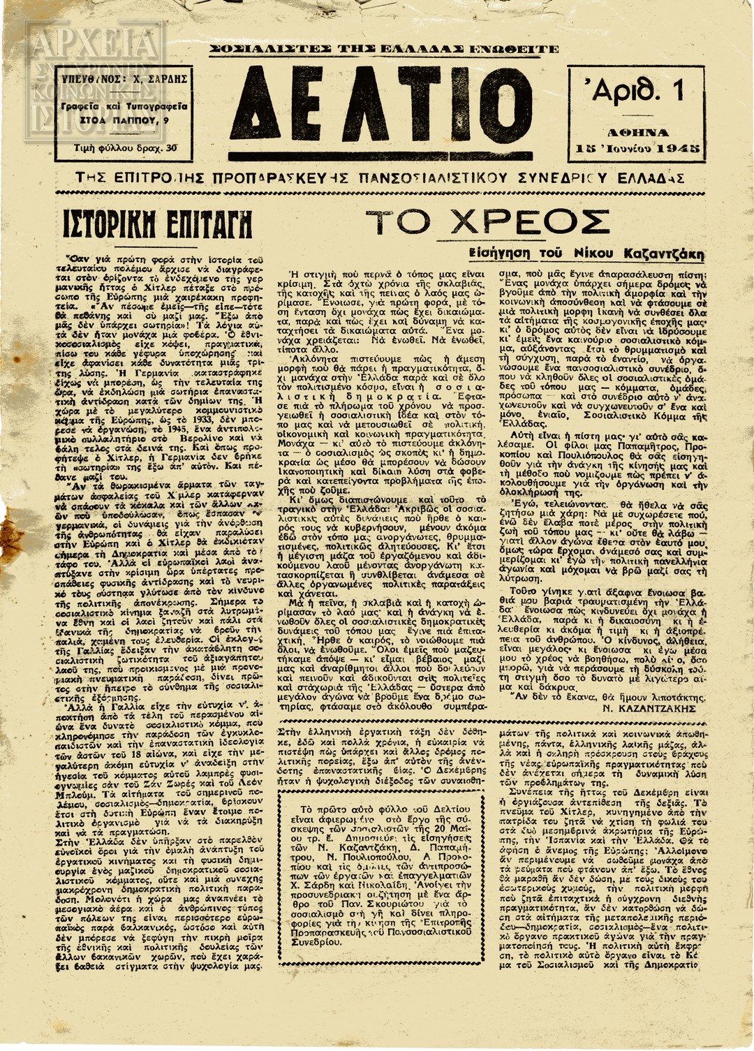 | Εκδότης | Επιτροπή Προπαρασκευής Πανσοσιαλιστικού Συνεδρίου Ελλάδας |