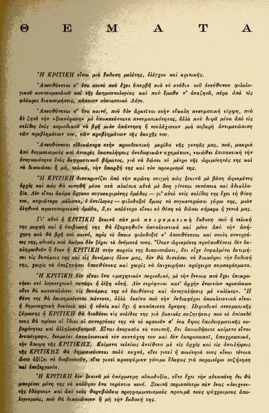 | Περιοδικό | Κριτική, Δίμηνη έκδοση μελέτης και κριτικής |