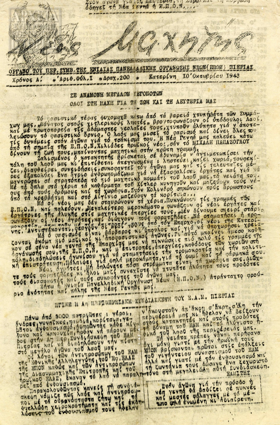 Αναζητήστε ταυτόχρονα 2 ή και περισσότερους όρους χωρίζοντας τους με κόμμα Π.Χ: ΕΠΟΝ, Πειραιάς, έκθεση.