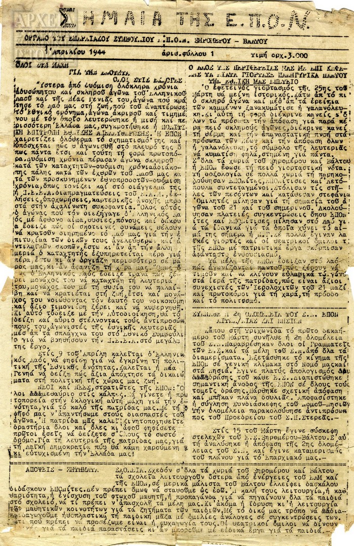 Αναζητήστε ταυτόχρονα 2 ή και περισσότερους όρους χωρίζοντας τους με κόμμα Π.Χ: ΕΠΟΝ, Πειραιάς, έκθεση.