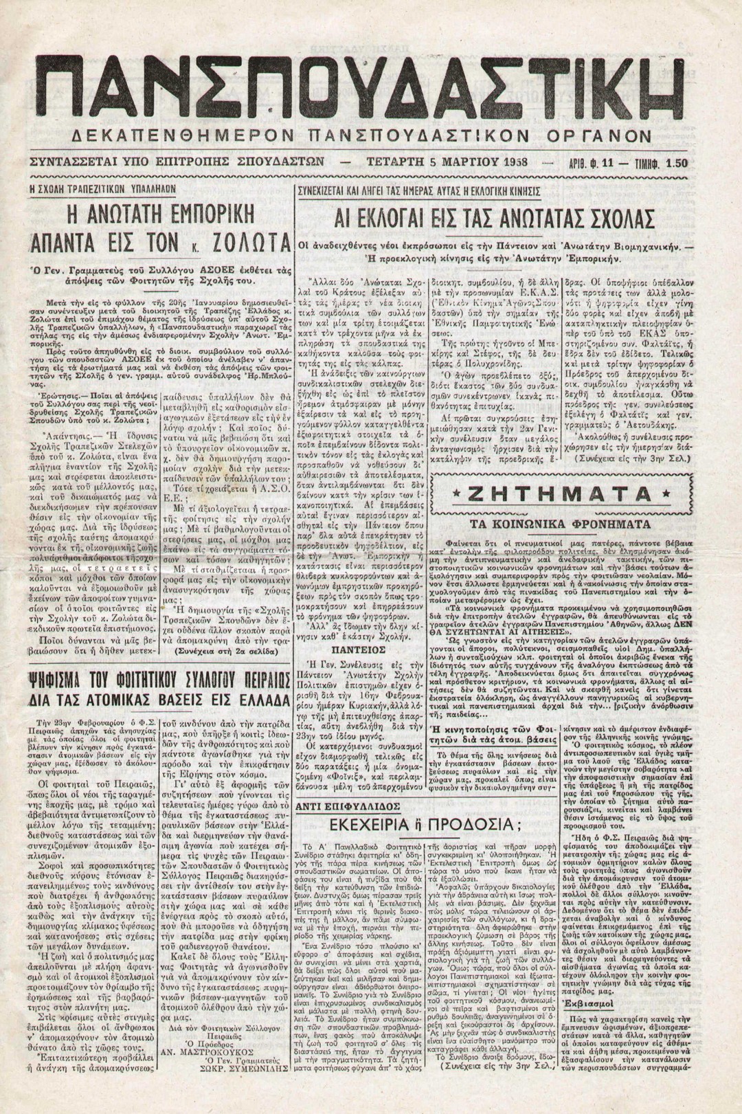 | Θέμα ως θέμα | Σχόλια επικαιρότητας Φοιτητικό κίνημα Εκπαιδευτικά ζητήματα Ιδιωτική εκπαίδευση Πανελλήνιο Φοιτητικό Συνέδριο (1ο) Φοιτητικός τύπος Εθνοτοπικοί σύλλογοι Φοιτητικό κίνημα / εκλογές Φοιτητικοί σύλλογοι Αντιπυρηνικό κίνημα |