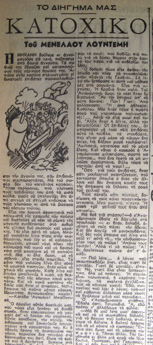 | Τίτλος | Παραπέμπεται σε δίκη ο Μενέλαος Λουντέμης για το βιβλίο του Βουρκωμένες μέρες.Η απολογία του εξόριστου συγγραφέα |