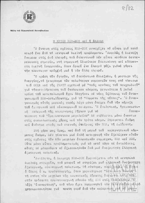 Θέματα | ΚΚΕ (Κομμουνιστικό Κόμμα Ελλάδας) ΕΟΚ (Ευρωπαϊκή Οικονομική Κοινότητα) ΠΑΣΟΚ (Πανελλήνιο Σοσιαλιστικό Κίνημα) |