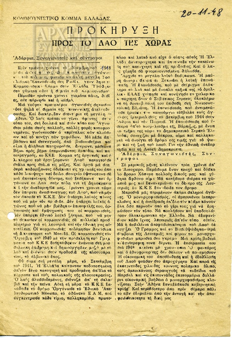 | Τίτλος | Προκήρυξη για τα πενηντάχρονα του ΚΚΕ |