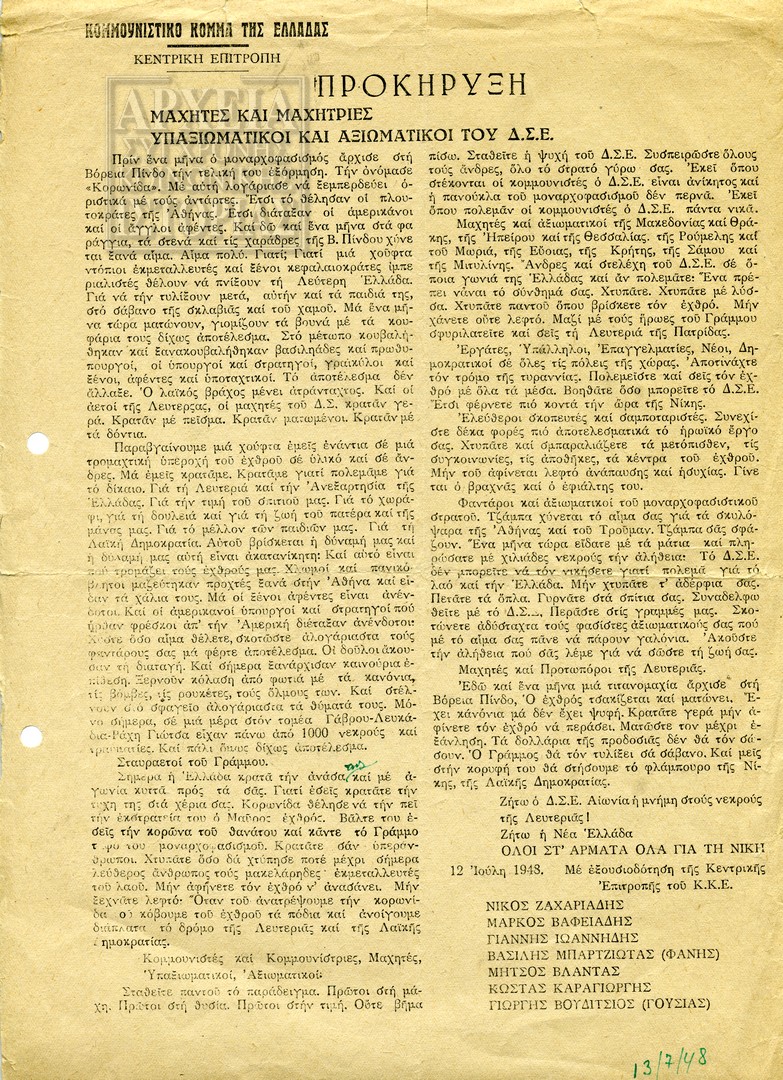 | Θέματα | ΚΚΕ (Κομμουνιστικό Κόμμα Ελλάδας) ΔΣΕ (Δημοκρατικός Στρατός Ελλάδας) Π.Δ.Κ. (Προσωρινή Δημοκρατική Κυβέρνηση) Δ.Σ.Ε. / Ουλαμός πυροβολικού Κομοτηνής ΚΚΕ / Κεντρική Επιτροπή / Ανακοινώσεις Θράκη Γράμμος Σμόλικας |