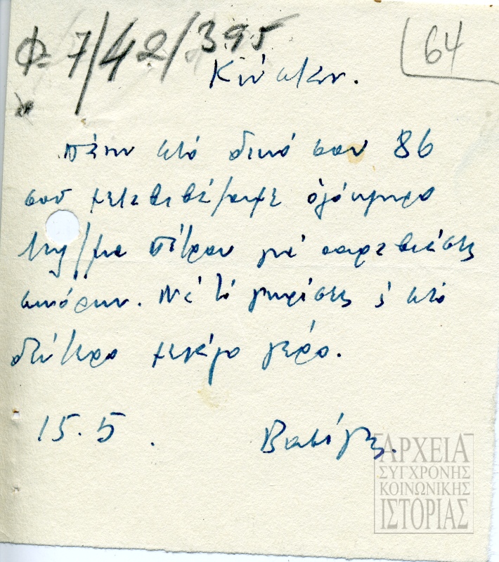 | Θέματα | ΚΚΕ (Κομμουνιστικό Κόμμα Ελλάδας) ΔΣΕ (Δημοκρατικός Στρατός Ελλάδας) ΚΚΕ / Κεντρική Επιτροπή / Πολιτικό Γραφείο Πολωνία Βαρσοβία |