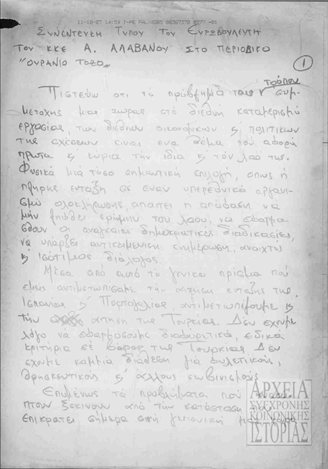 Τίτλος | Συνέντευξη Τύπου του Ευρωβουλευτή του ΚΚΕ Α. Αλαβάνου στο περιοδικό ''Ουράνιο Τόξο'' |