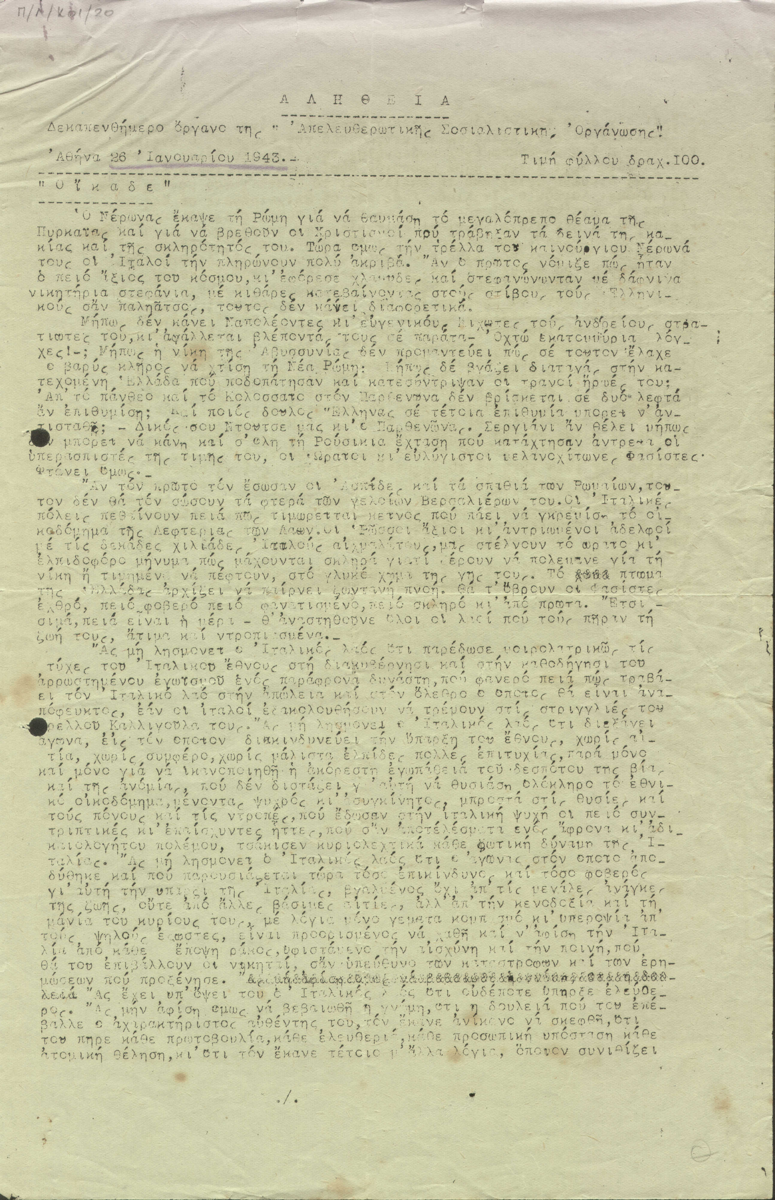 | Εκδότης | Υπαλληλικό Εθνικό Απελευθερωτικό Μέτωπο (Υ.Ε.Α.Μ.) |