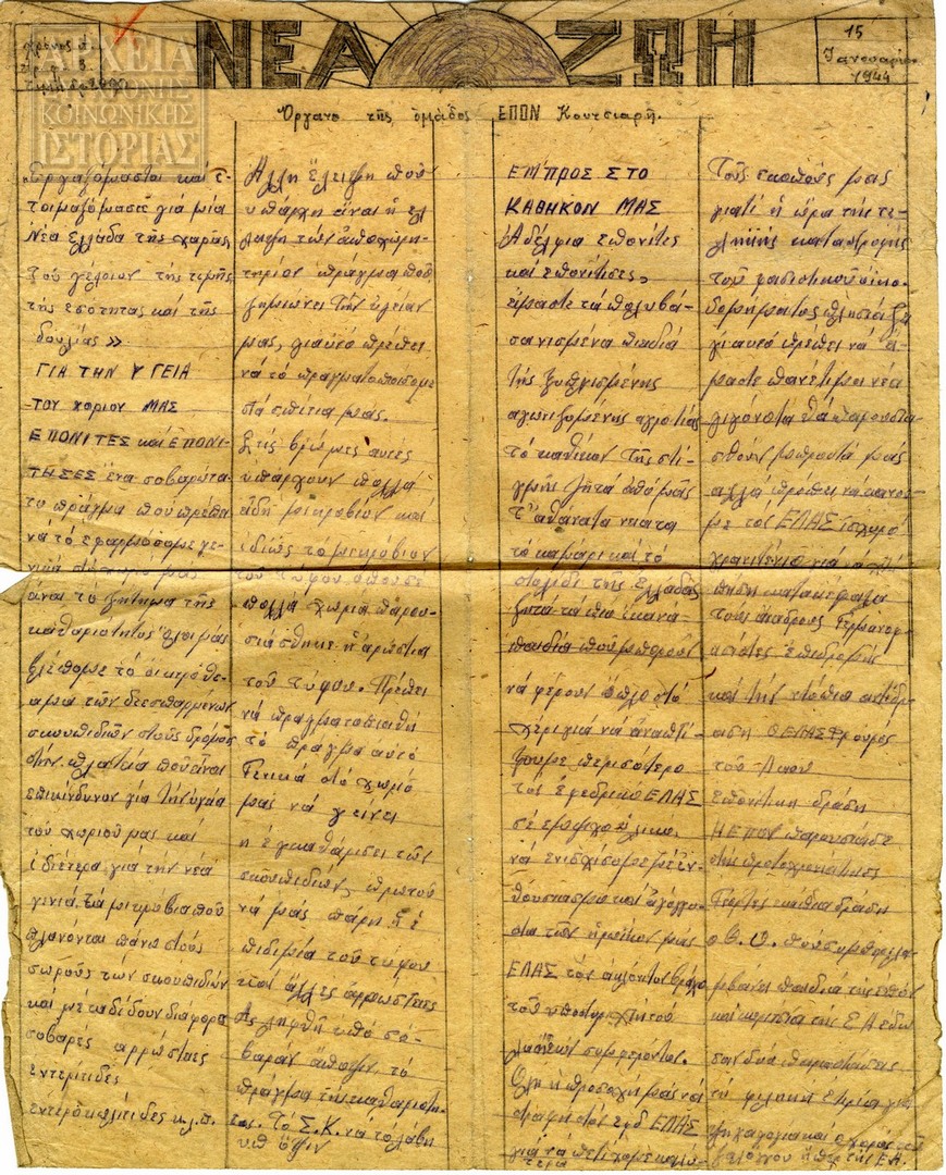 | Θέματα | ΕΛΑΣ (Ελληνικός Λαϊκός Απελευθερωτικός Στρατός) ΕΠΟΝ (Ενιαία Πανελλαδική Οργάνωση Νέων) Εφ. ΕΛΑΣ (Εφεδρικός Ελληνικός Λαϊκός Απελευθερωτικός Στρατός) |