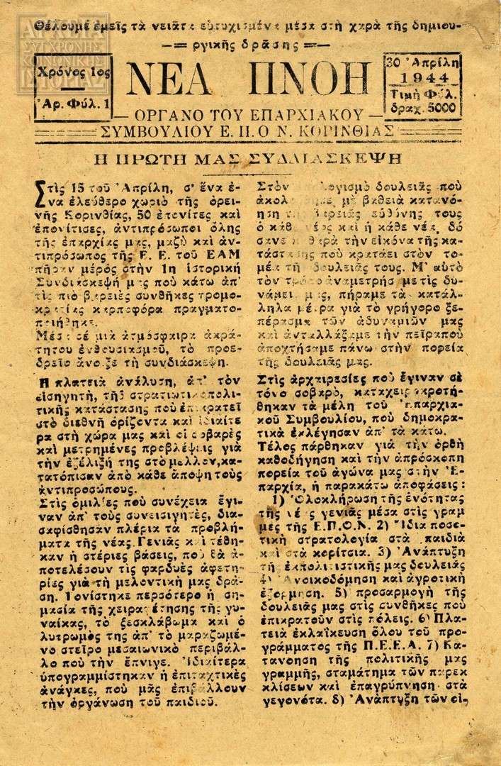 | Εκδότης | ΕΠΟΝ / Επαρχιακό Συμβούλιο Κορινθίας |