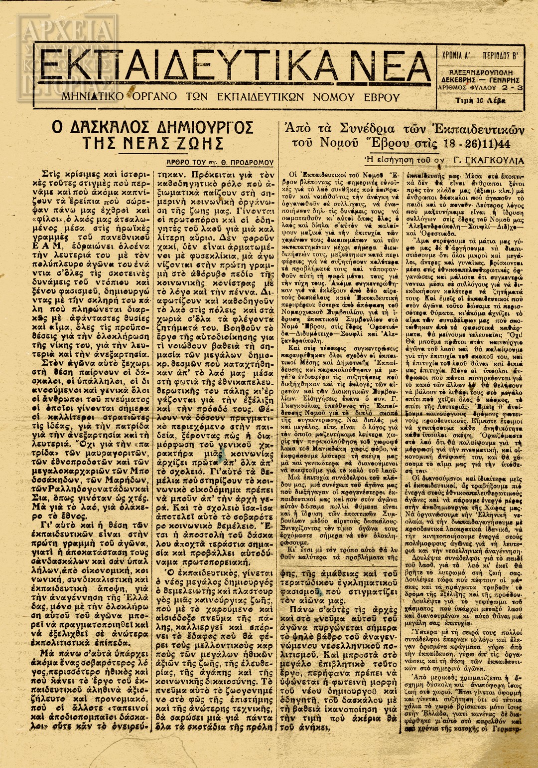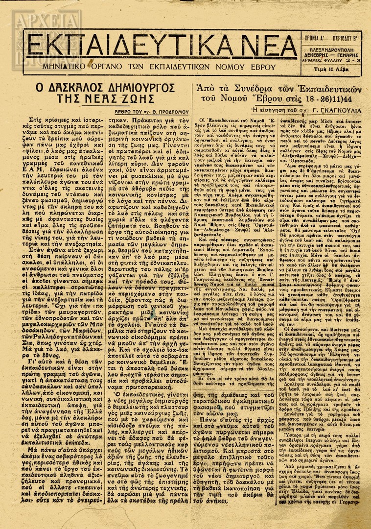 | Υπότιτλος | Μηνιάτικο όργανο των εκπαιδευτικών Νομού Έβρου |
