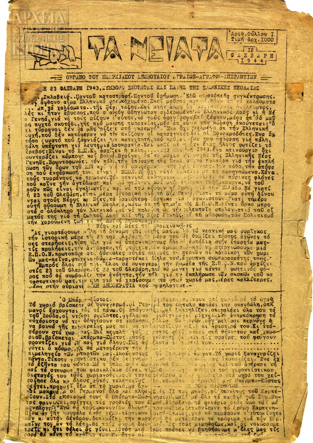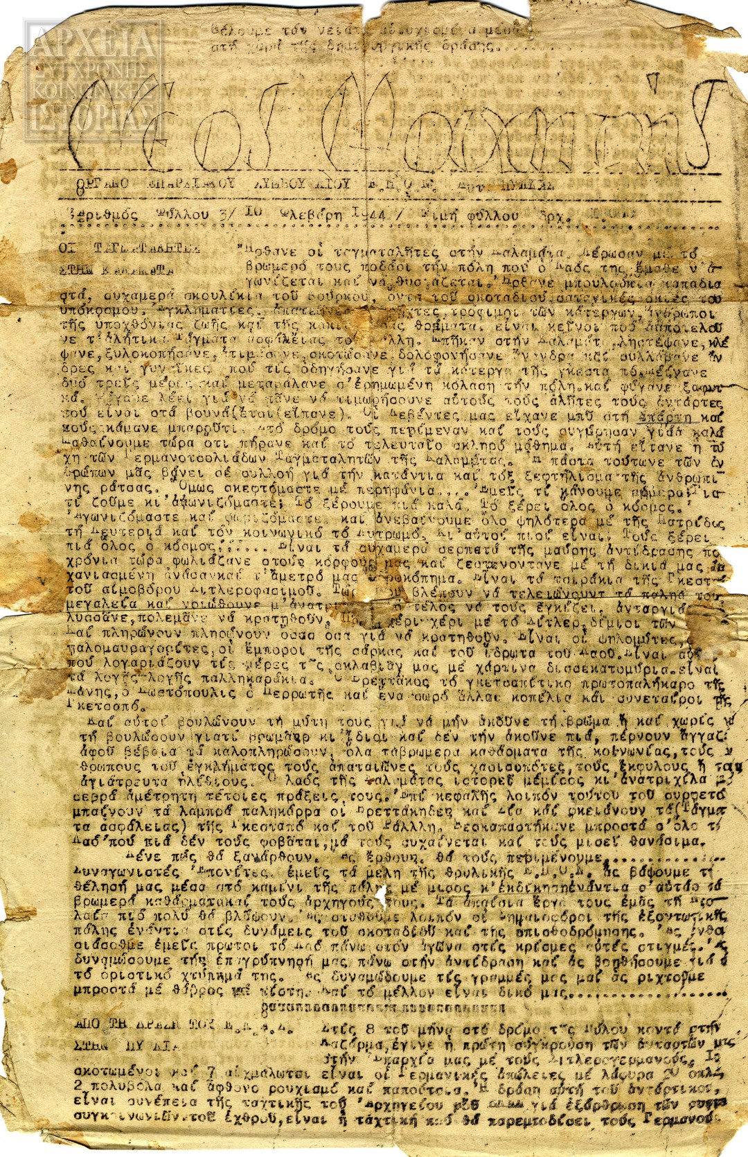 | Υπότιτλος | Εβδομαδιαία Ελληνική Αντιστασιακή Εφημερίδα |
