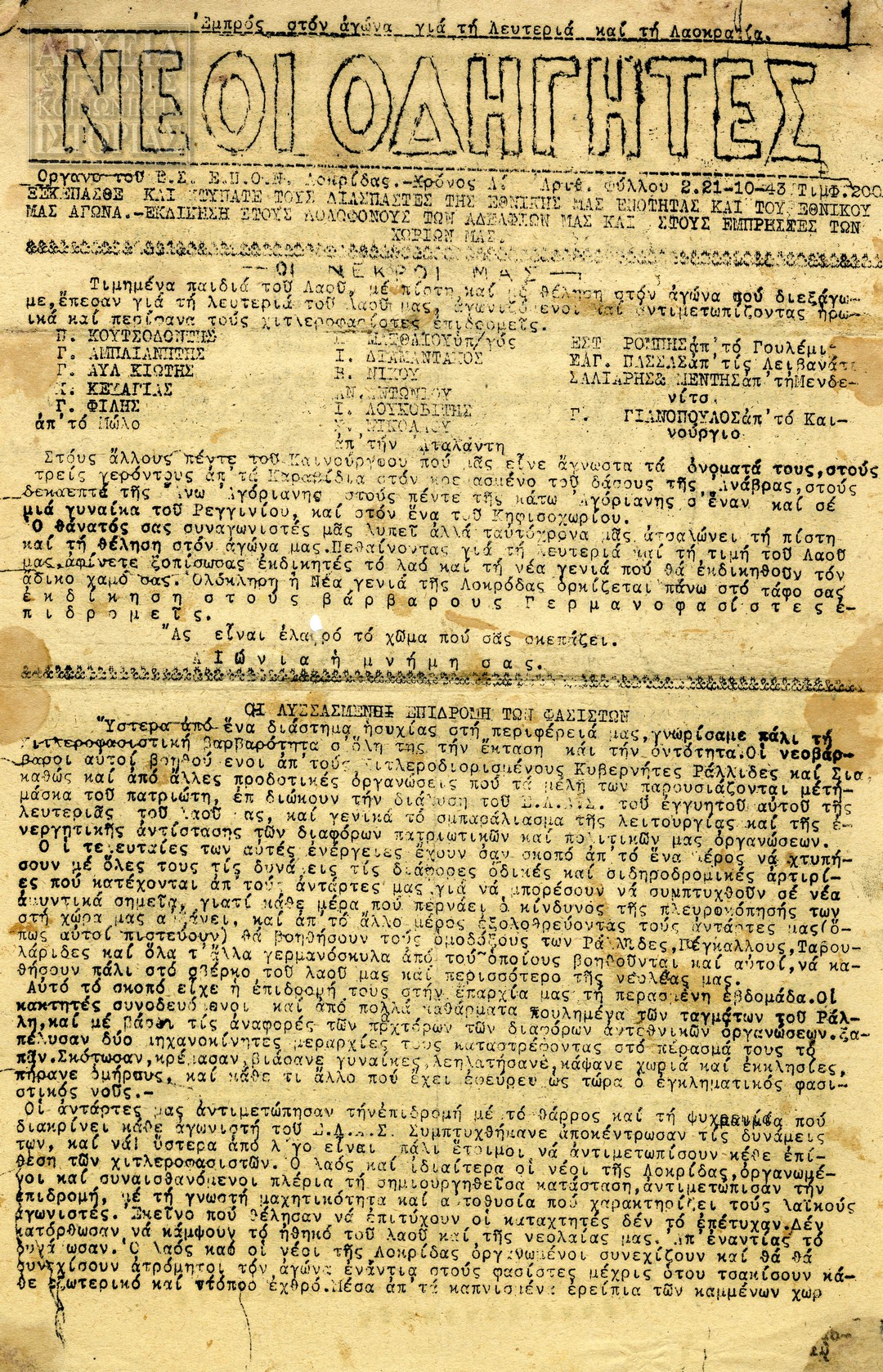 | Θέμα ως θέμα | Κατοχή - Αντίσταση Αντιστασιακός τύπος ΕΠΟΝ / Συνδιασκέψεις ΕΠΟΝ / θύματα αντίστασης Αντιστασιακές οργανώσεις Γερμανική Κατοχή / εκτελέσεις |