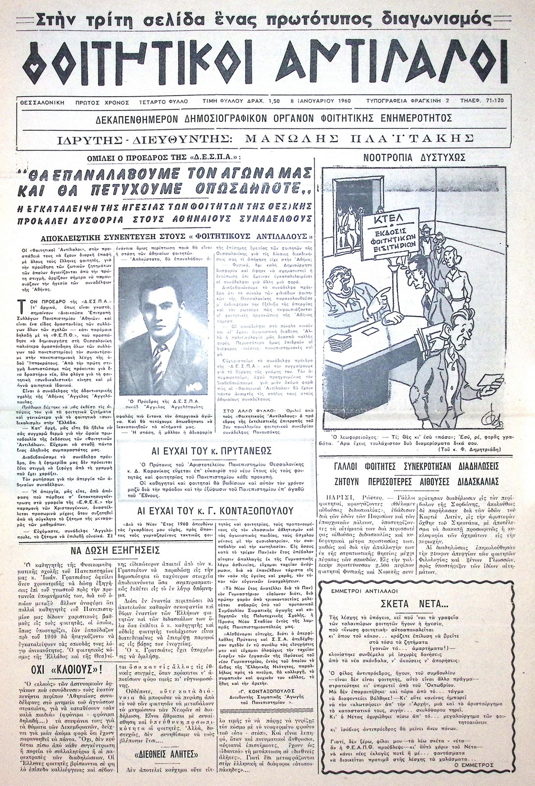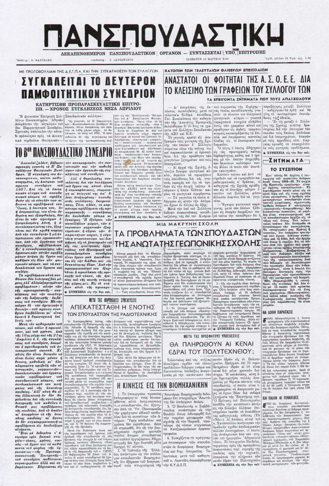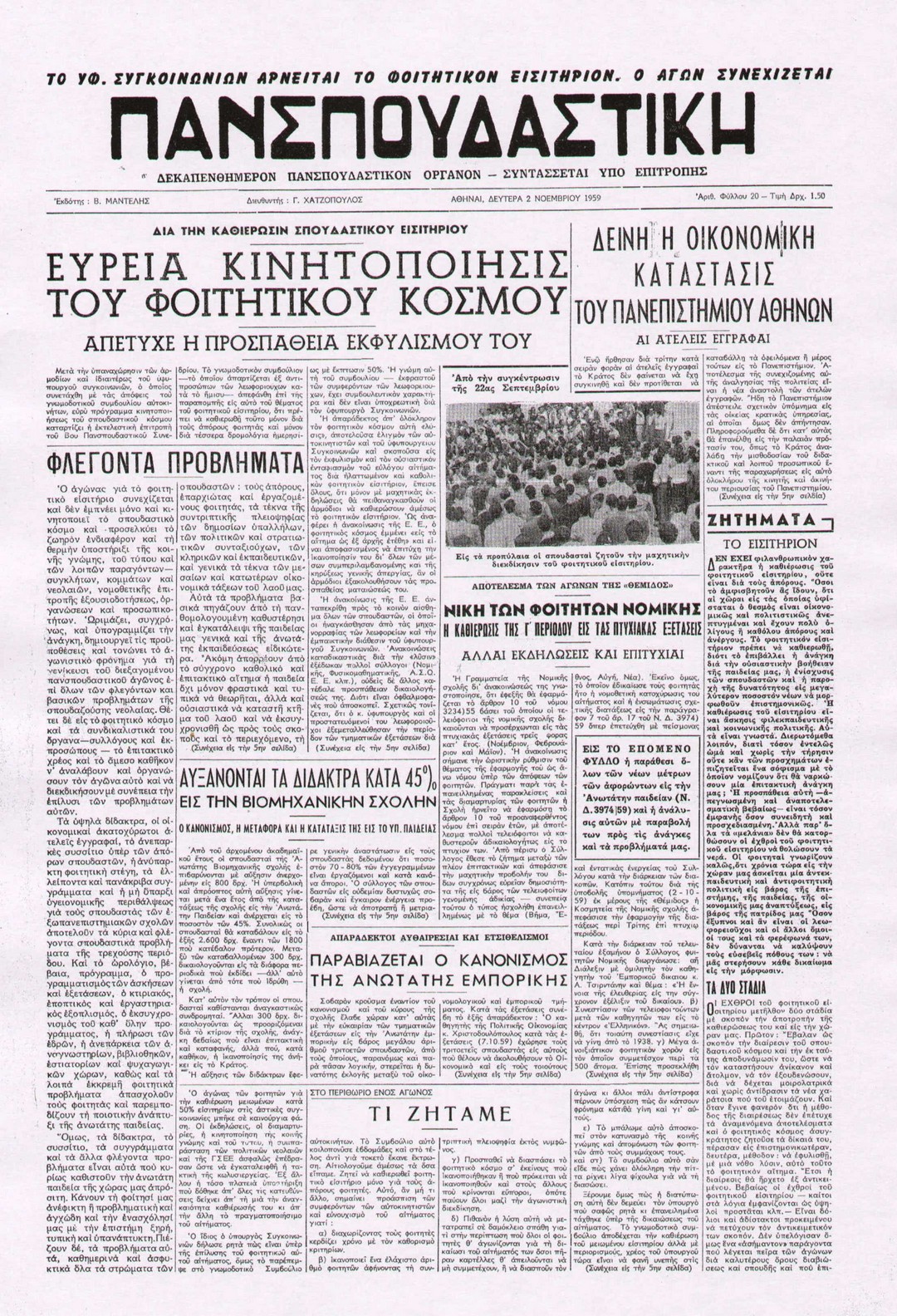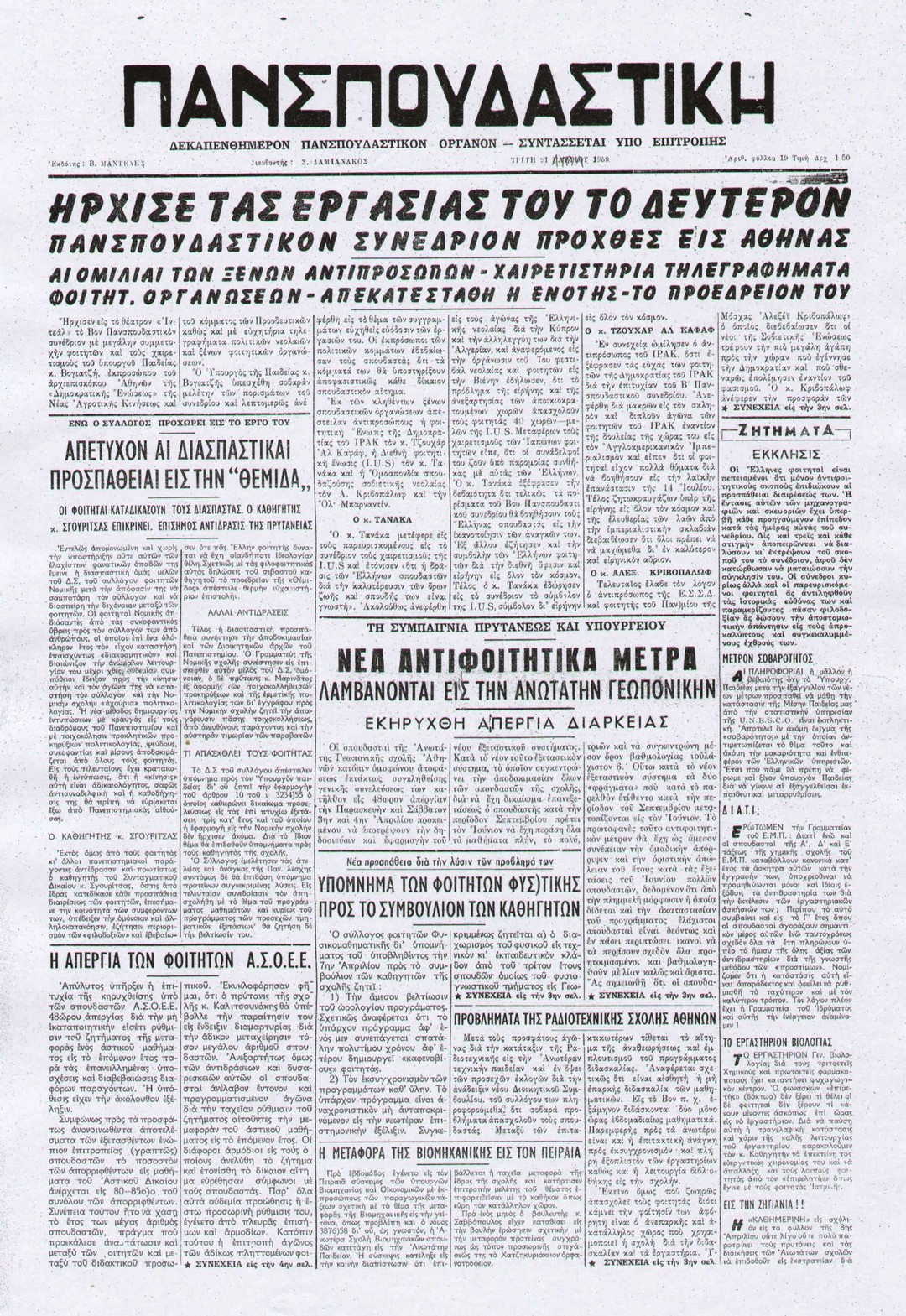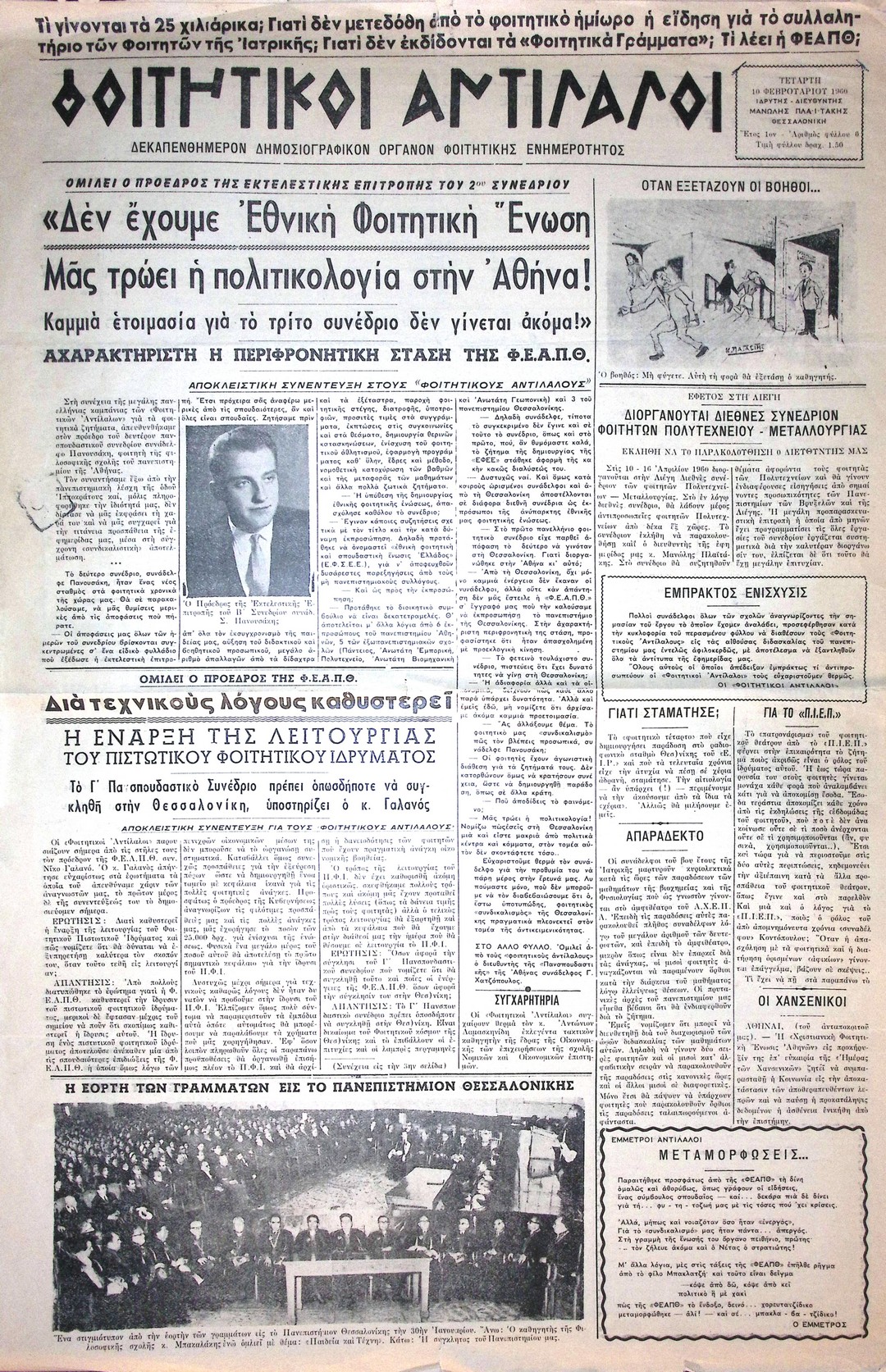 | Θέματα | UNEF (Εθνική Ένωσις Φοιτητών Γαλλίας) ΔΕΣΠΑ (Διοικούσα Επιτροπή Συλλόγων Πανεπιστημίου Αθηνών) |