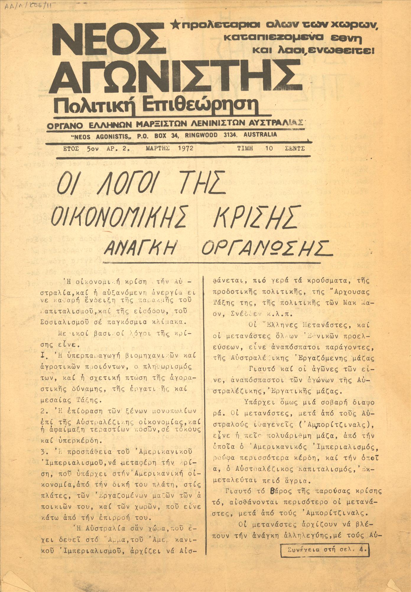 | Εκδότης | Έλληνες Μαρξιστές Λενινιστές Αυστραλίας |