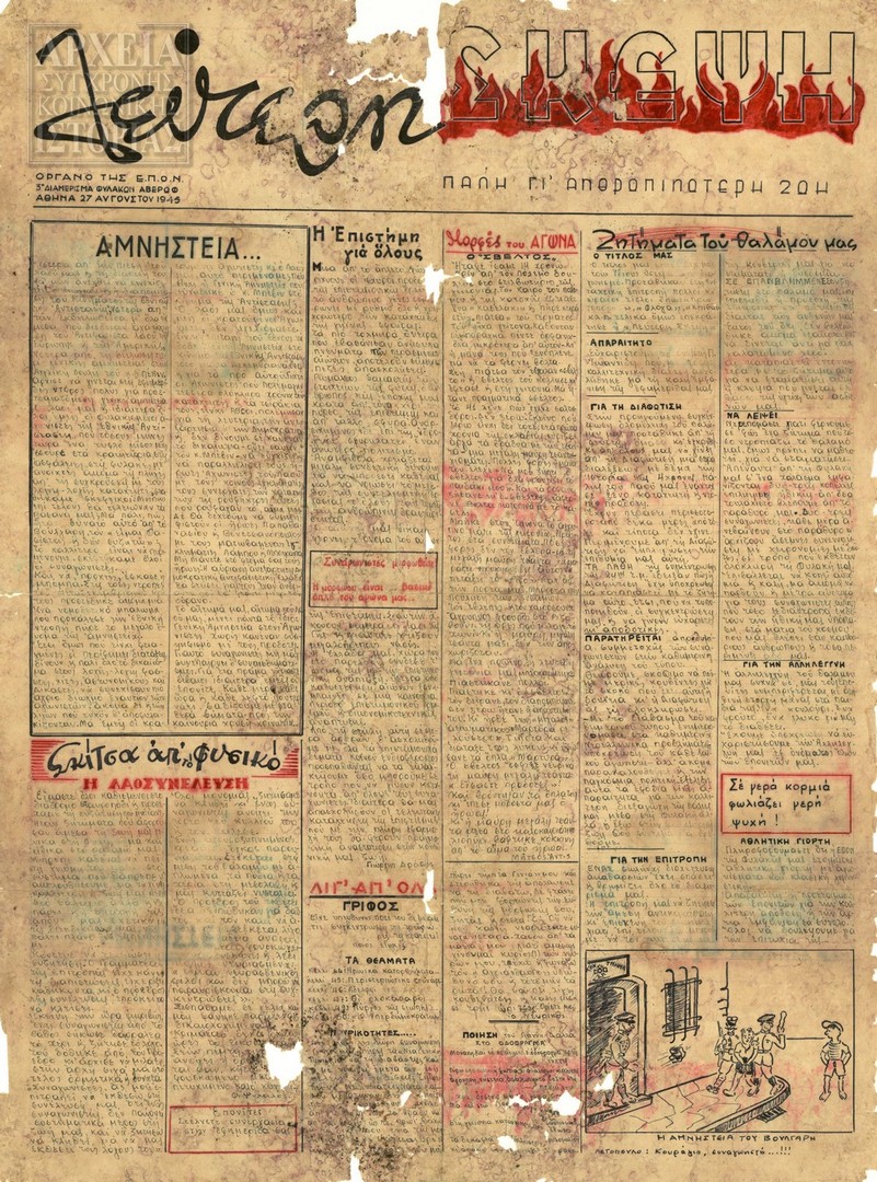| Θέμα ως θέμα | Φυλακές Αβέρωφ Μεταπολεμική Ελλάδα Αντιστασιακός τύπος Πολιτικές διώξεις Αντιστασιακές οργανώσεις Έλληνες πολιτικοί κρατούμενοι Εφημερίδες τοίχου |