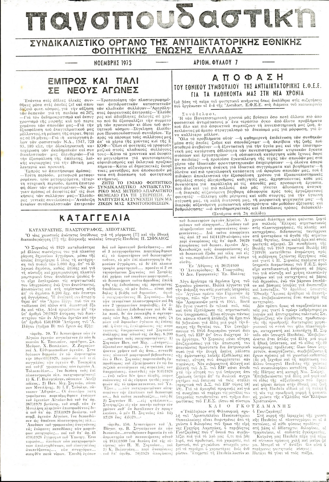 | Εκδότης | Αντιδικτατορική Εθνική Φοιτητική Ένωση Ελλάδας (Αντι-Ε.Φ.Ε.Ε) |