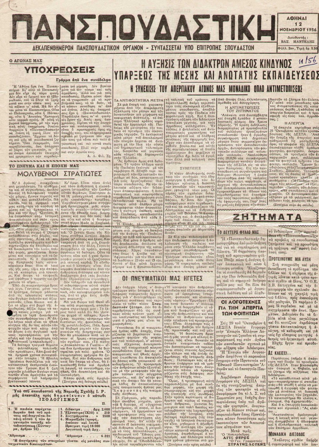 | Θέμα ως θέμα | Πολιτικές νεολαίες ΑΕΙ / διδακτικό προσωπικό Αντιδικτατορικό κίνημα ΕΠΟΝ / Επέτειος ίδρυσης Κυπριακό Ζήτημα Δικτατορία 21ης Απριλίου 1967 Αντιδικτατορικές οργανώσεις Δικτατορία 21ης Απριλίου 1967 / Εκπαιδευτική πολιτική Αντιδικτατορικός Τύπος εσωτερικού Εθνική Αντίσταση 1941-1944 / Μνήμη Δράσεις αλληλεγγύης |